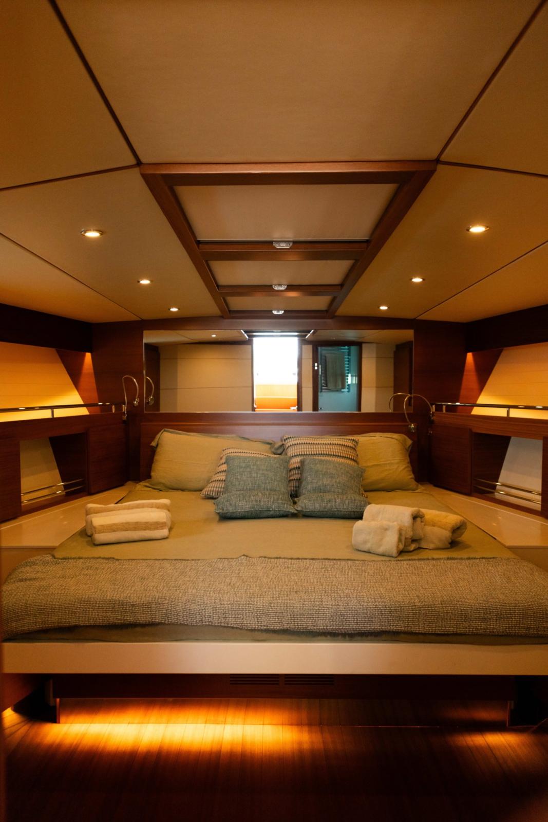 Water pressure pump, 4 Batteries (Litio), Teak Side Decks, Deck Shower, Hydraulic Flaps, Solar panels, Gangway (idraulica), Platform (idraulica tender lift), 3 Electric Bilge Pump, Teak Cockpit, Shorepower connector, Electric Windlass, swimming ladder, Saddles for tender, Stabilizers (Seakeeper 9), cockpit table, Tender (idrogetto Williams), Horn, T-Top, Teak Deckhouse.