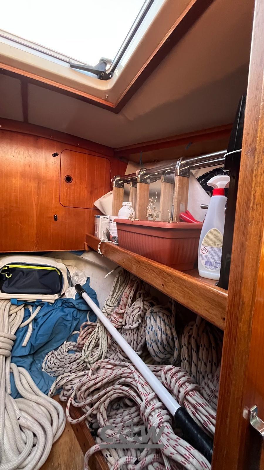 Engine Alarm, Alternator, Anchor (Ronca vulcan), Water pressure pump, 4 Batteries (1x100 (2024) 3x120), Battery charger (Masterwolt), Shore power cable, Deck Shower (A prua e a poppa caldo/freddo), Secondary Propeller (Elica tre pale fissa), Anchor mount, Anchor Chain Washdown, Battery Monitor (Victron), Solar panels (100 W cad + più trasformatore/regolatore victron), Gangway (Bamar in inox/teak), Waste Water Tank Drain Pump, Manual Bilge Pump, Teak deck (In buono stato), Teak Cockpit (In ottimo stato), Shorepower connector, Water harbor connector system, Electric Windlass (Lofran's), Rod rigging (prua e poppa 2022), Strand rigging (2018), swimming ladder, Outboard Engine Support Bracket, cockpit table (Teack), Living Room Foldable Table, 5 Winch (Harken / Lewmar), 3 Winch Electric (Harken), Windex.