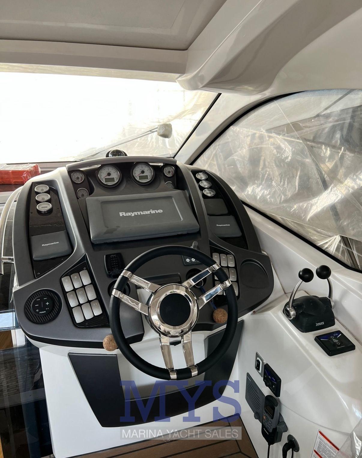 Engine Alarm, Bilge Alarm, Electric Engine Compartment Opening, Water pressure pump, Shore power cable, Special Colour (Scafo grigio), Deck Shower, Electric Flaps (Automatici), Hard top, Washbasin in the cockpit, Gangway, Platform, Automatic Bilge Pump, Manual Bilge Pump, Entry door, Teak Cockpit, Shorepower connector, Electric Windlass, swimming ladder, cockpit table, Living Room Foldable Table, Horn.