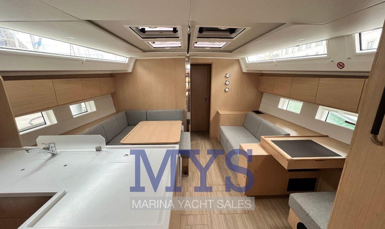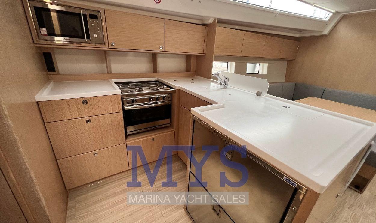 - Enormous roominess, large interior spaces comparable to a 55-footer. Spacious dinette, L-shaped galley with large worktop