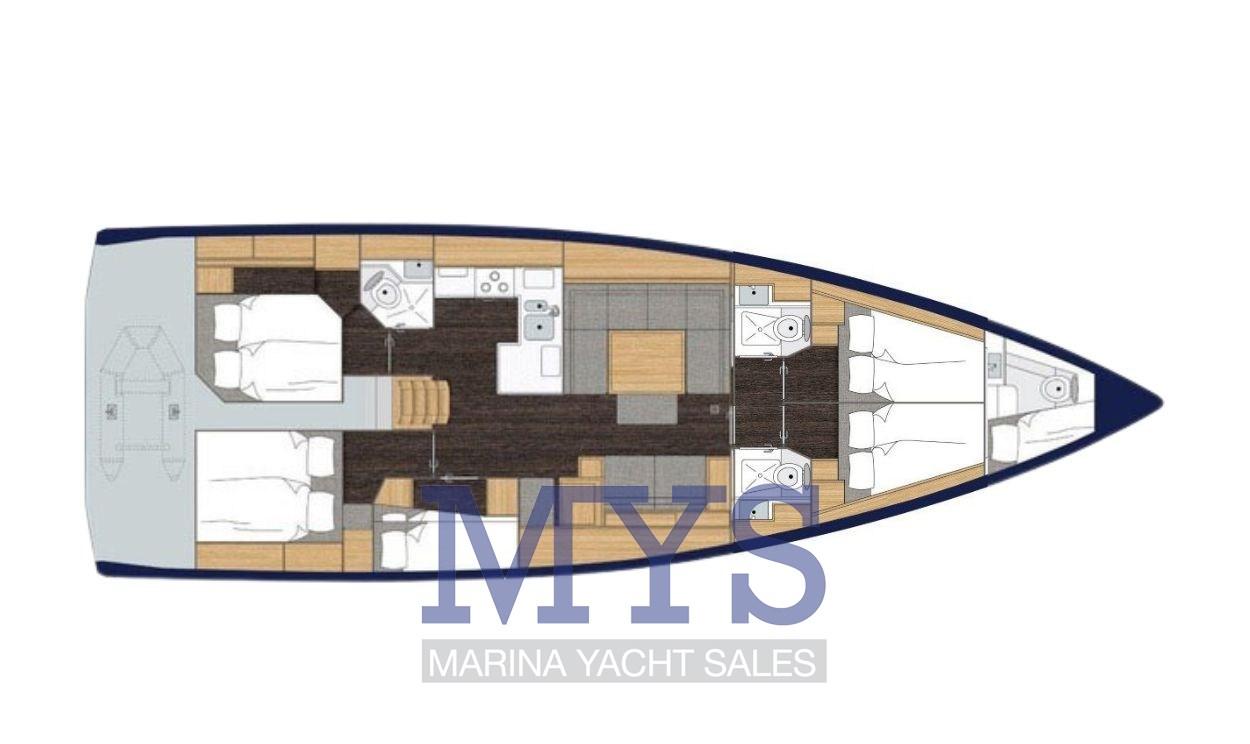 Engine Alarm, Bilge Alarm, Water pressure pump, Deck Shower, Tender Garage, Courtesy Lights, Platform, Automatic Bilge Pump, Manual Bilge Pump, Entry door, Teak Cockpit (ESTECH), Shorepower connector, Electric Windlass, Strand rigging, swimming ladder, Outboard Engine Support Bracket, cockpit table, Living Room Foldable Table, 2 Winch Electric.