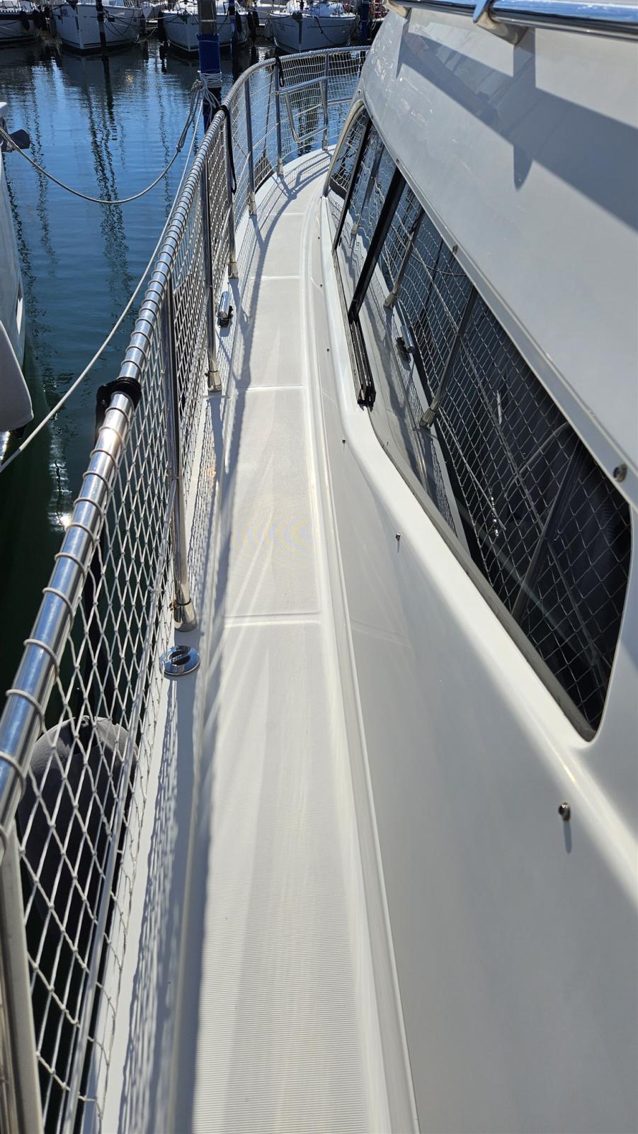Improvements made in 2020/21 : Interior cushions, Dinette side walls, Vertical walls of cabins, New mattresses. Bimini external cushions on the flybridge. . Plexiglax fly . Repainted engine room. Engines: disassembly and cleaning of exchangers, replacement of all sleeves and verification of motor control on the computer. Engine repainting. Balanced axles and propellers, bushings replaced. Rudders and loshes overhauled.