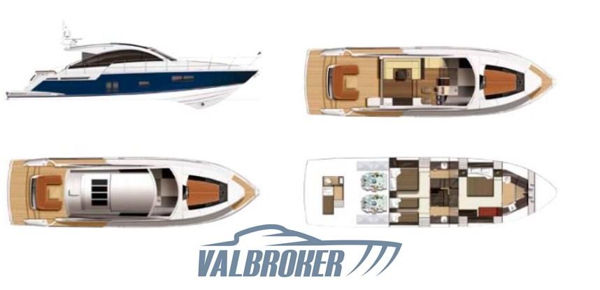 Elegant and contemporary sportcruiser. Full-beam master cabin with en-suite bathroom, two guest cabins with en-suite facilities and crew cabin. Powered by 2x900HP Volvo Penta D13 shaft drive, only 700 engine hours.
