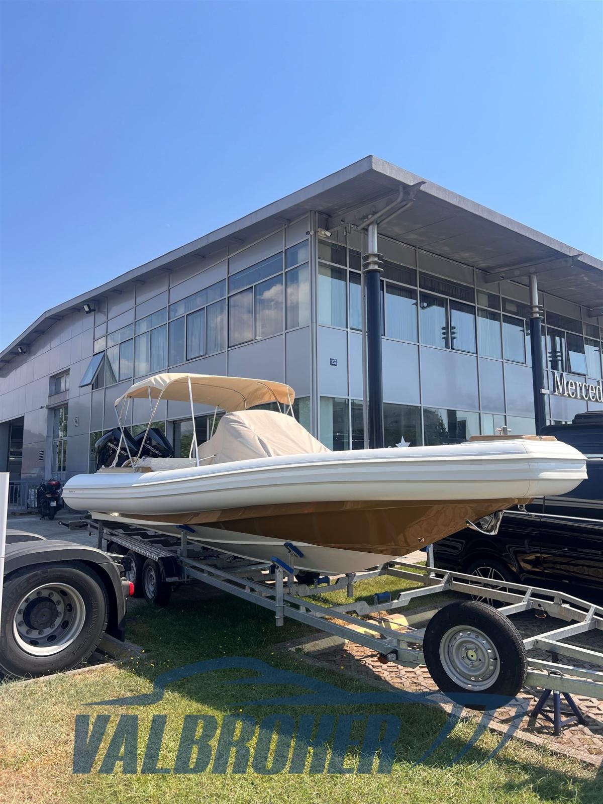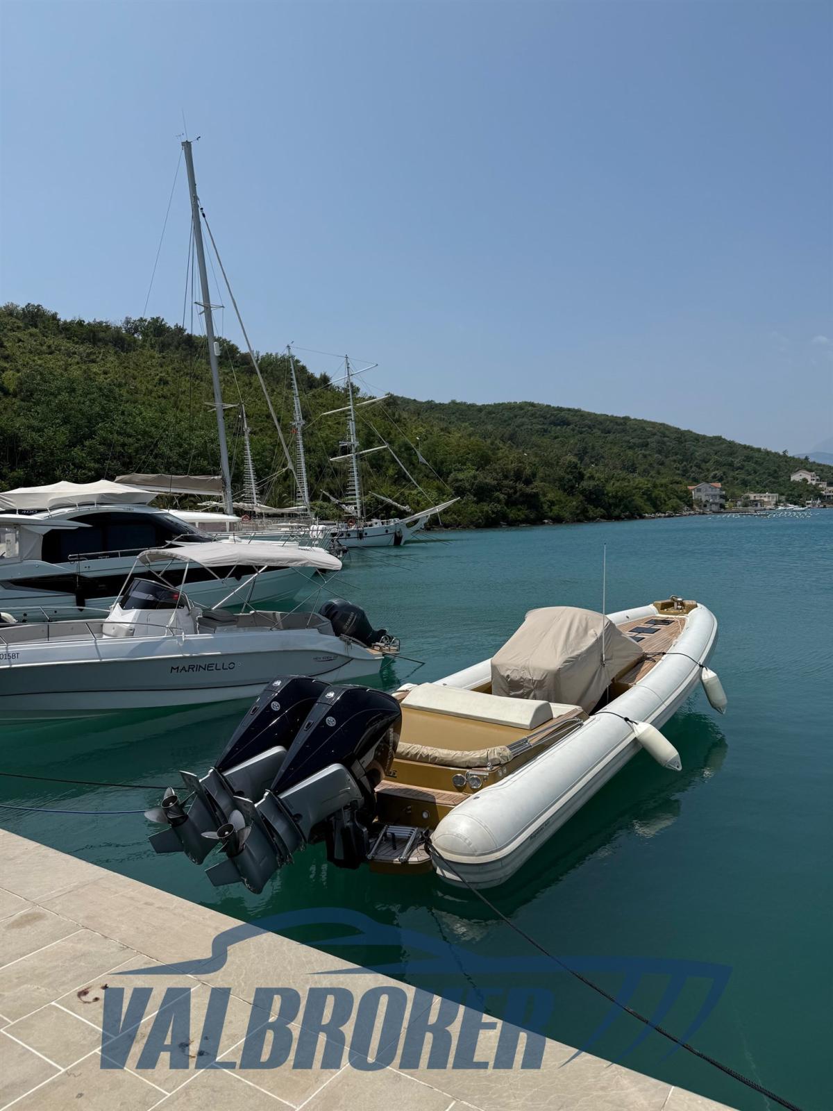 It is powered by two 300 HP Mercury Verado V8 outboard engines. DEMO, NEW never used. Only 10 hours of riding! Billable.
