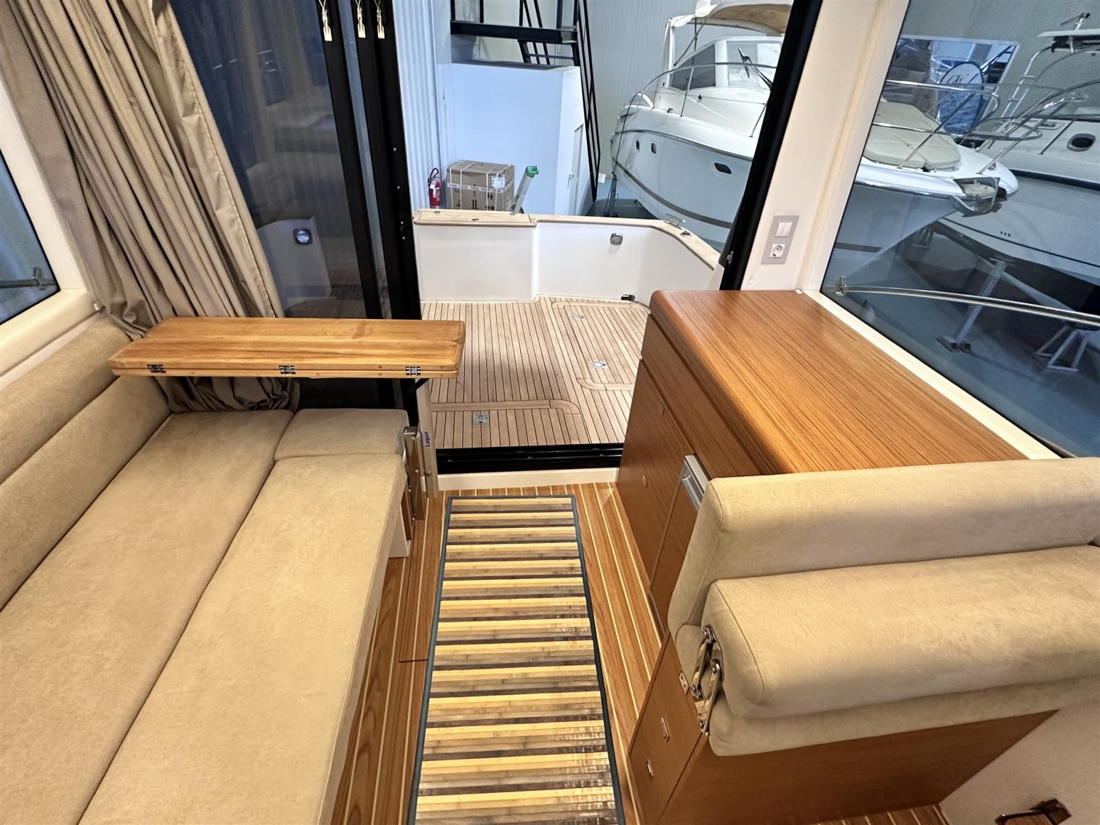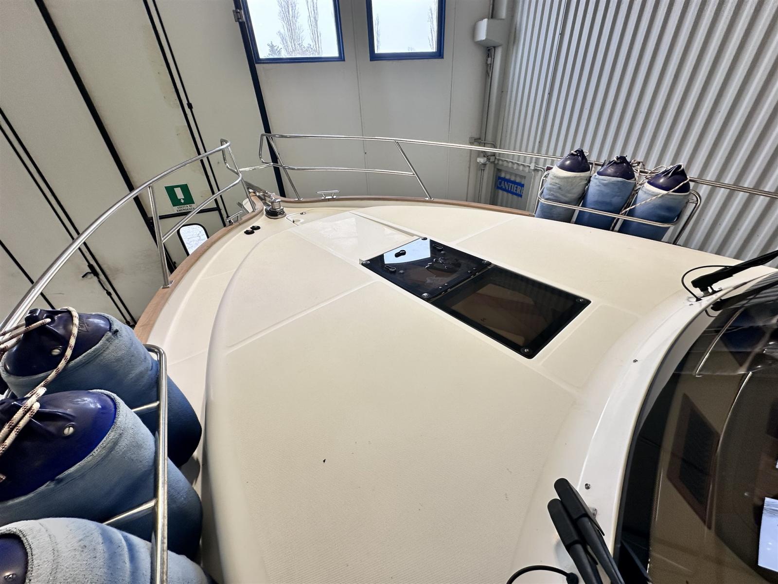 Engine Alarm, Water pressure pump, Special Colour (blu), Deck Shower, Directional Spotlight, Electric Flaps, Hard top, Fire Extinguishing System, Flaps Indicators, Platform, Automatic Bilge Pump, Manual Bilge Pump, Side door, Teak Cockpit, Shorepower connector, Voltage Rectifier, Electric Windlass, swimming ladder, Horn.