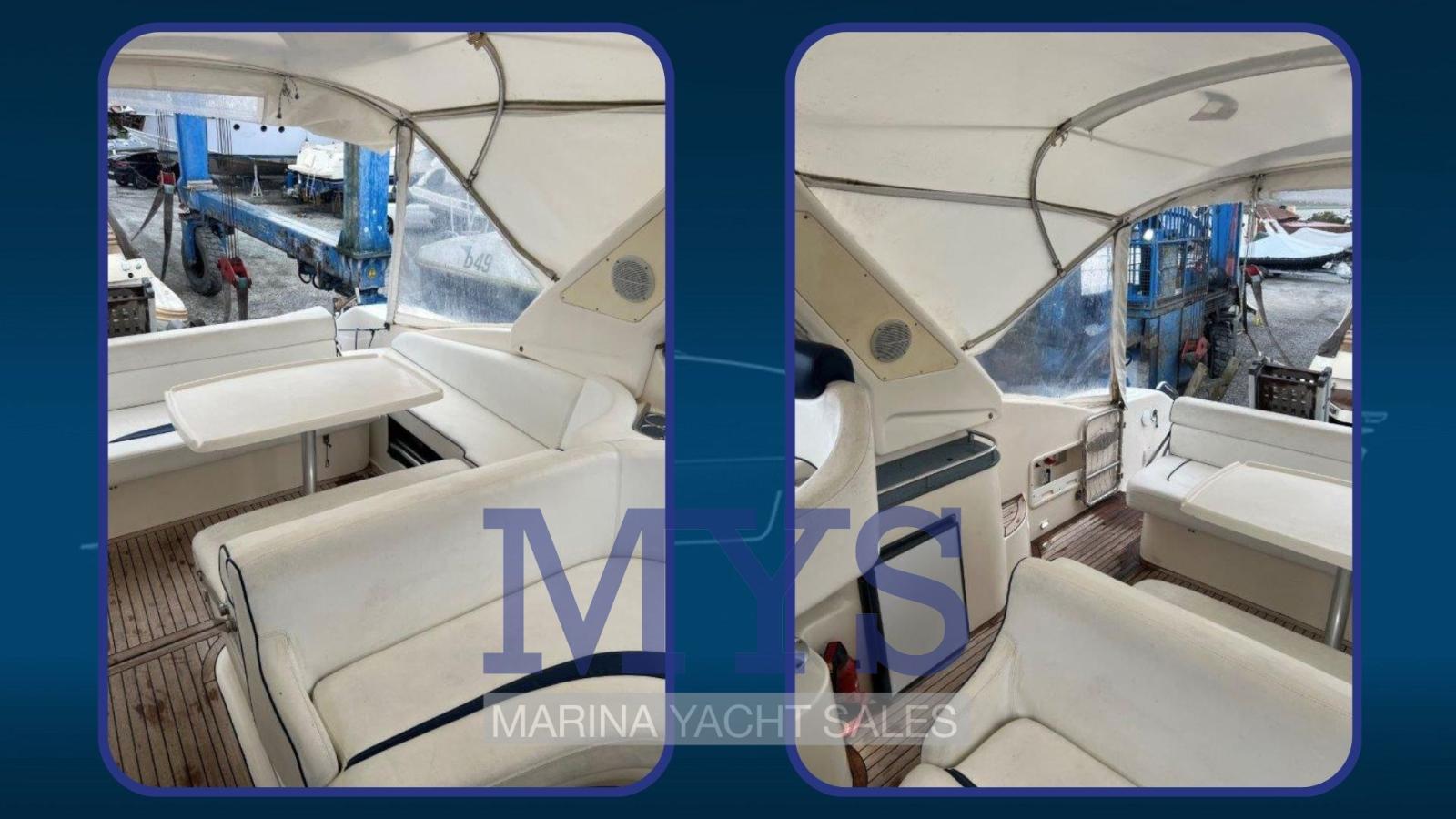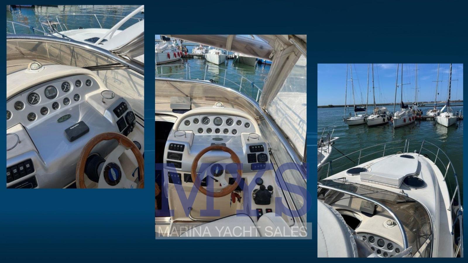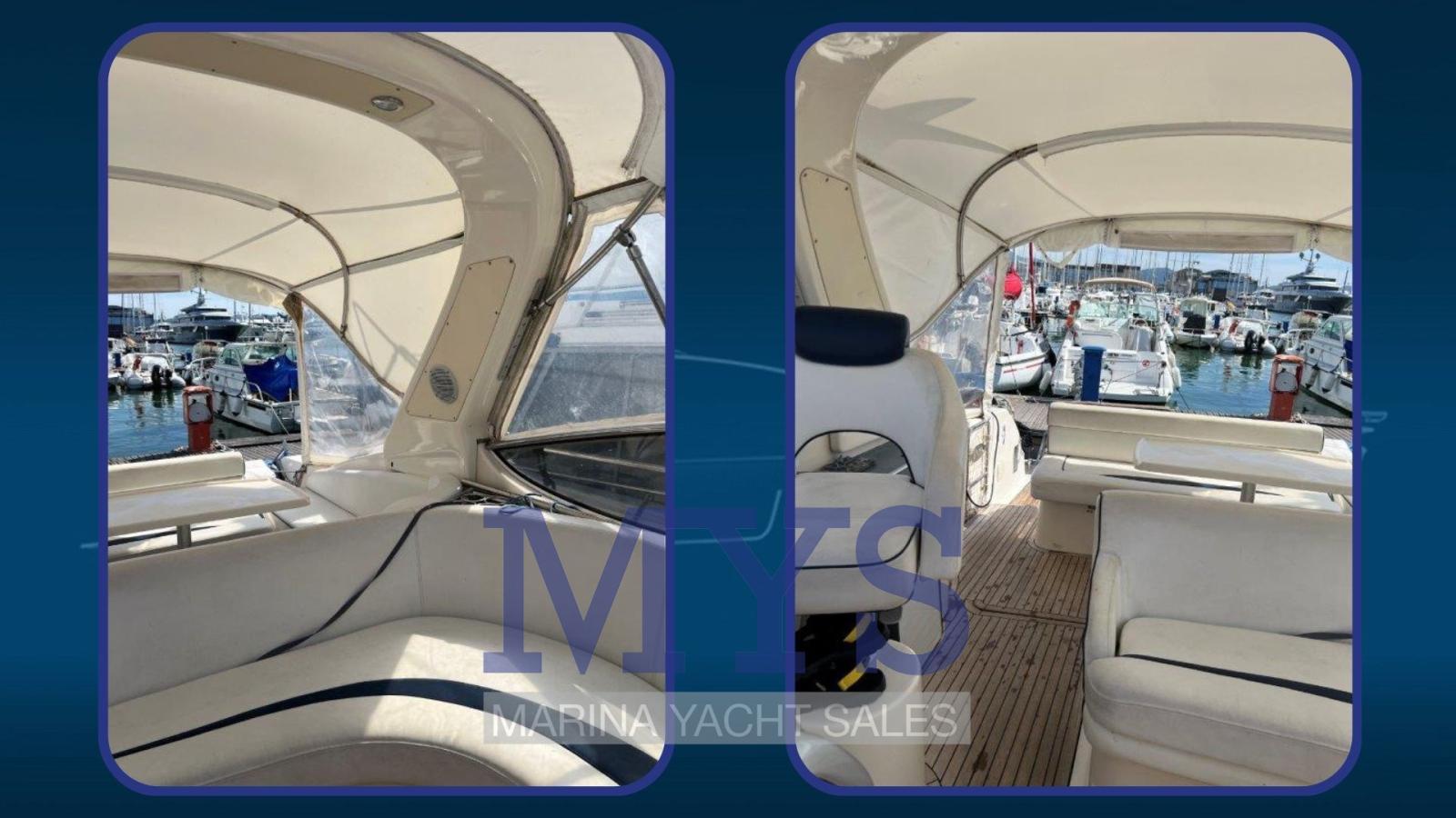 Engine Alarm, Anchor (+ 50 mt. di catena), Electric Engine Compartment Opening, Water pressure pump, Life Raft (rinnovato 2024), Batteries (maggiorate 4 x 100 Ah), Battery charger (nuovo nel 2021), Shore power cable, Special Colour (fascia blu), Deck Shower, 4 Secondary Propeller, Hydraulic Flaps, Fire Extinguishing System, Flaps Indicators, Washbasin in the cockpit, Courtesy Lights, Battery Monitor, Fenders, Gangway, Platform (in teak maggiorata), Automatic Bilge Pump, Manual Bilge Pump, Entry door, Teak Cockpit, Shorepower connector, Rollbar, Electric Windlass, swimming ladder, cockpit table, Living Room Foldable Table, guard rails with gates, Horn.