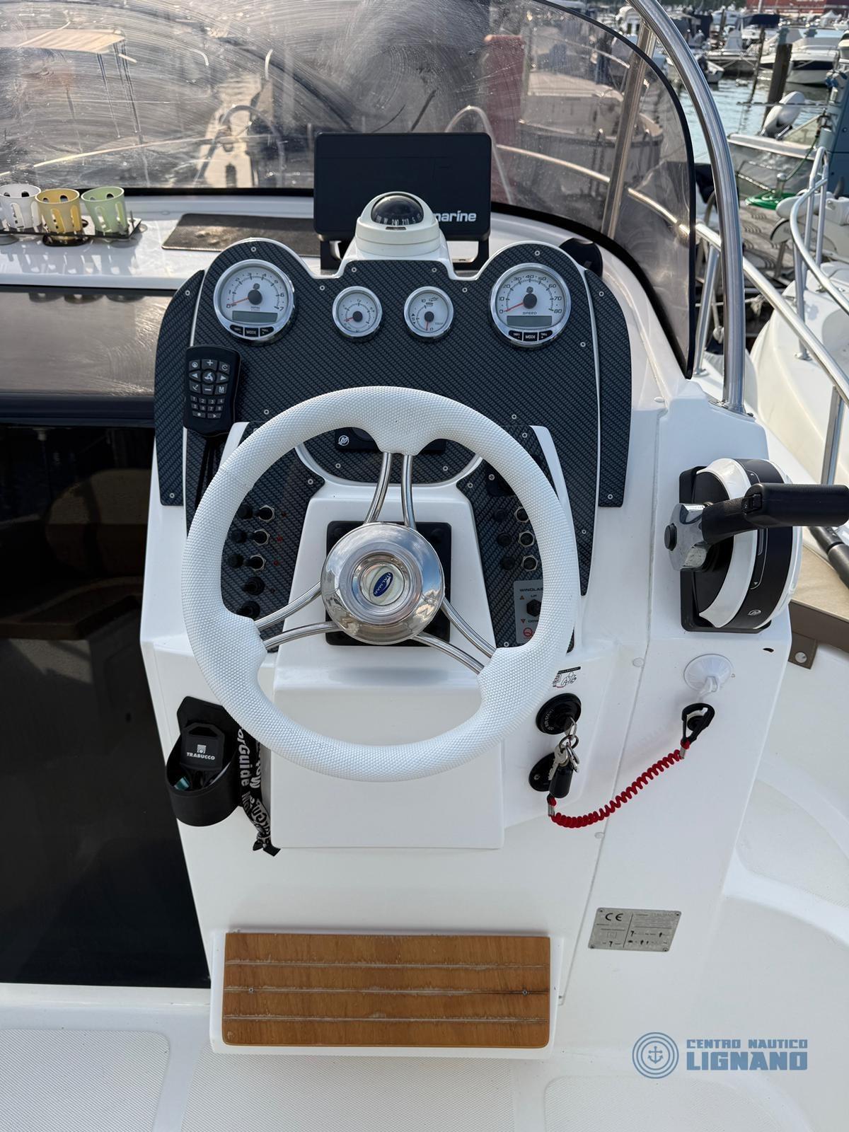 Italmar WA 20 Plus boat of 2019 with outboard engine 4-stroke Mercury F150 EFI with 370 hours of motoring, excellent general condition, very equipped, length 6 meters by 2.40 meters, cabin with 2 beds and chemical bathroom. The boat is equipped with many accessories and the bow electric motor visible in the photos is NOT included. The accessories supplied are: Activ trim mercury, hydraulic steering, electric anchor windlass with bow and console control, cockpit lights, 220v shore socket with battery charger, double battery with battery switch and selector, 220v -12v inverter, sink and stove under the seat, cockpit LED lights, chemical toilet, 12v and USB socket in the cabin, bow light with remote control, steel awning, external shower with 50 lt tank, 100 lt fuel tank, Raymarine Element 7 echo sounder, console cover and cockpit, cushions in perfect condition, bow engine not for sale. Visible in Aprilia Marittima (UD). Very interesting price, sale in the agency and directly from the private individual.