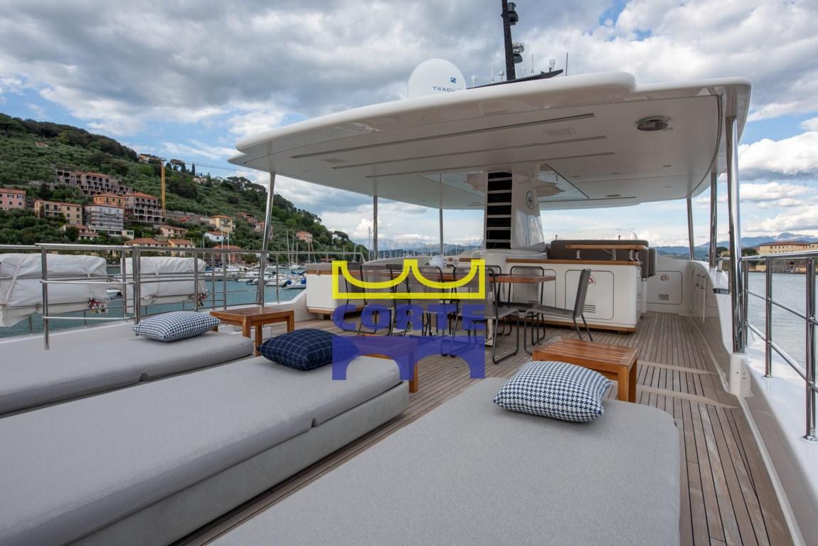 Storage unit, with kitchenette. Sunbathing area at the stern with sun loungers. Helm station. Teak decking.