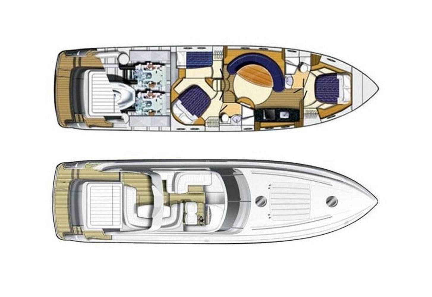 Engine Alarm, Bilge Alarm, Alternator, Water pressure pump, Shore power cable, Special Colour (SCAFO BLU), Guard rail, Directional Spotlight, Hydraulic Flaps, Tender Garage, Hard top, Fire Extinguishing System, Flaps Indicators, Washbasin in the cockpit, Courtesy Lights (LED), Gangway, Platform, Automatic Bilge Pump, Manual Bilge Pump, Teak deck, Teak Cockpit, Shorepower connector, Electric Windlass, swimming ladder, cockpit table, Horn.