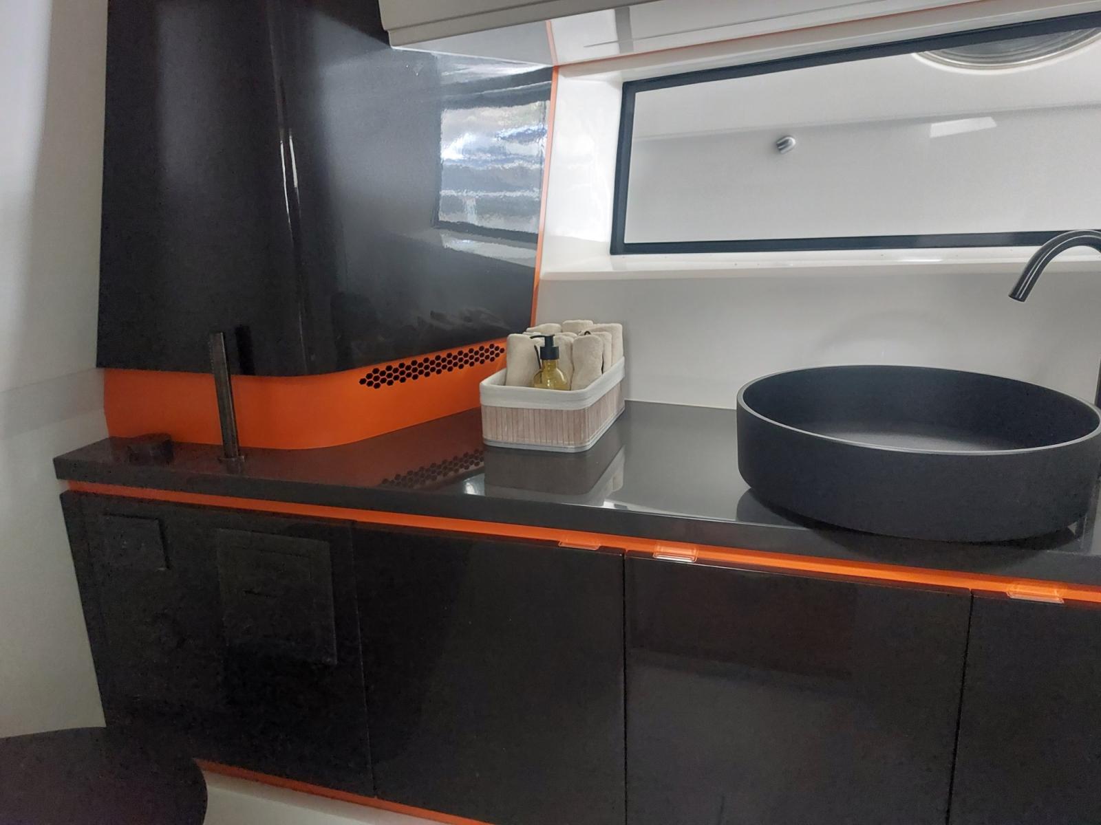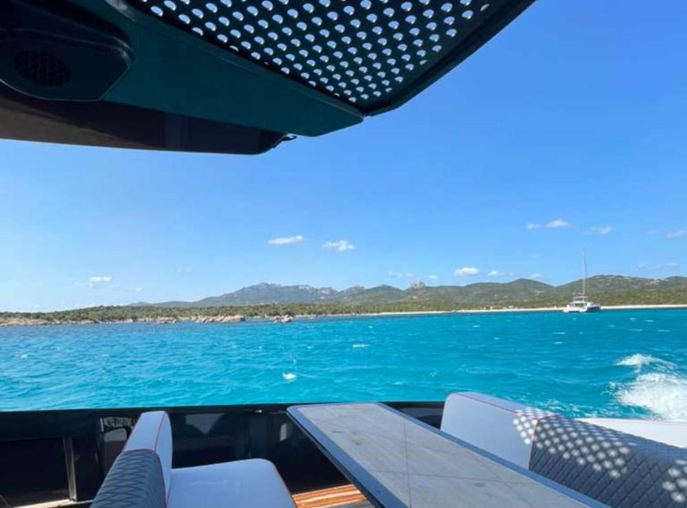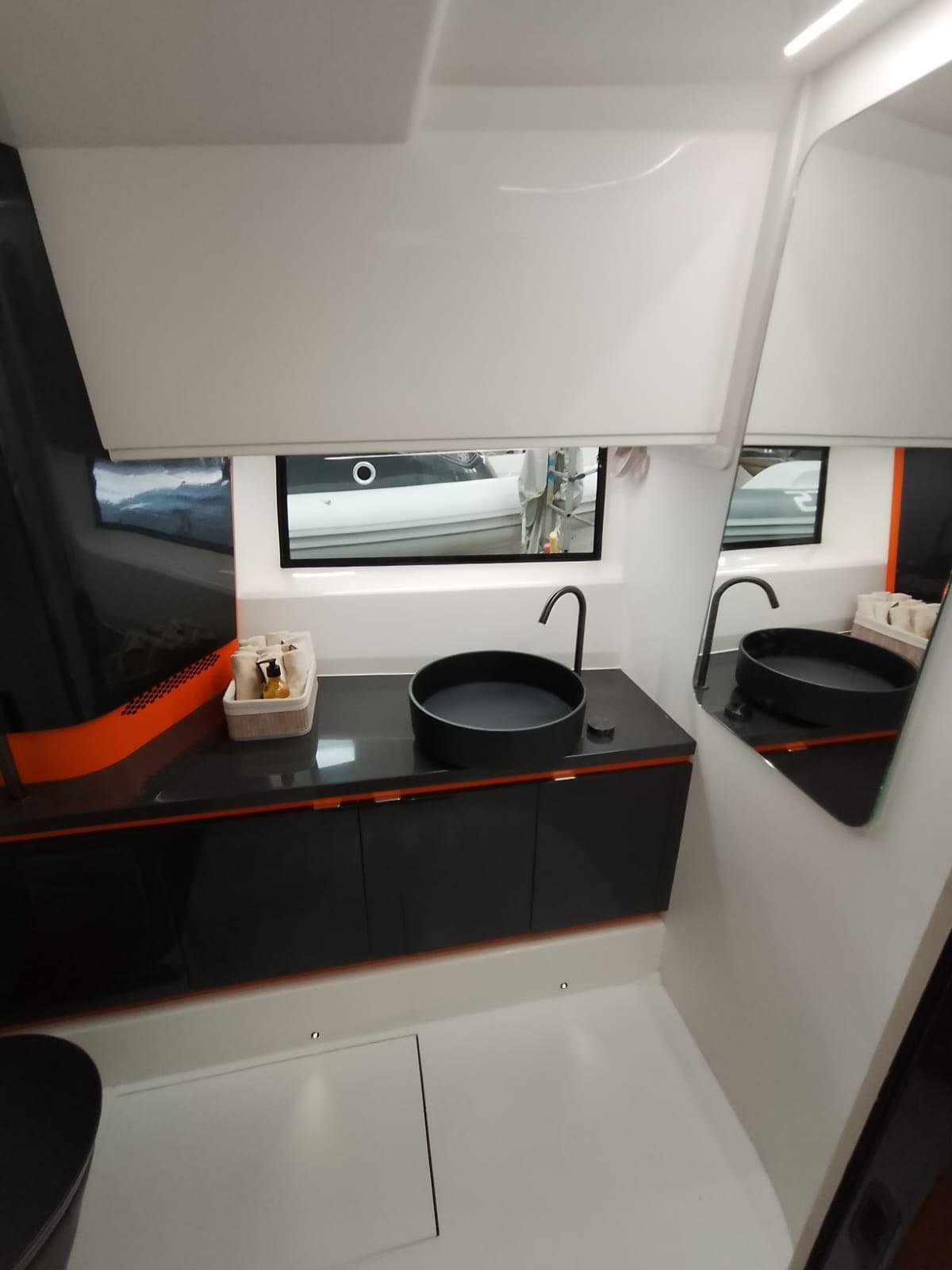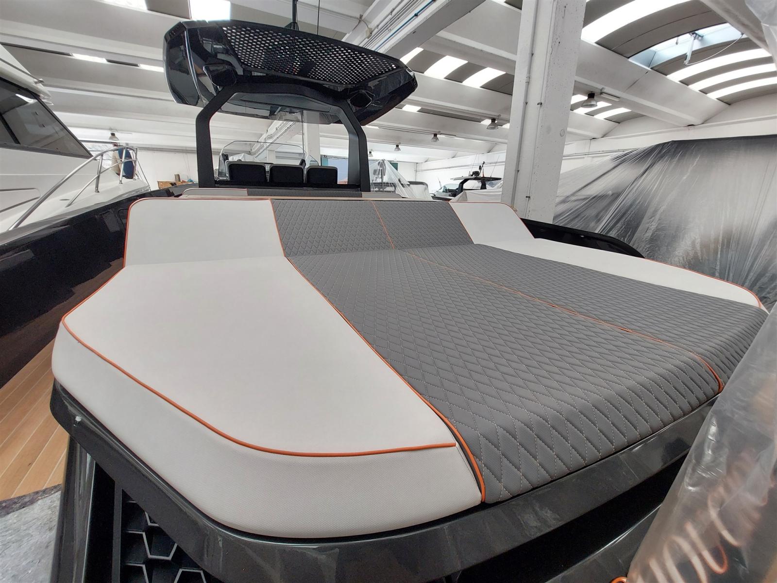 Fume/Gas Detector, 2 Engine Alarm, Bilge Alarm, Electric Engine Compartment Opening, Water pressure pump, Auto-Trim, Teak Side Decks, Shore power cable, Special Colour, Deck Shower, Headlights fixed on the stem, Anchor mount, Electric Flaps, Hard top, Fire Extinguishing System, 2 Flaps Indicators, Anchor Chain Washdown, Washbasin in the cockpit, Courtesy Lights, Underwater lights, Platform, Manual Bilge Pump, Teak deck, Entry door, Teak Cockpit, Shorepower connector, Rollbar, Electric Windlass, swimming ladder, cockpit table, Horn, T-Top.