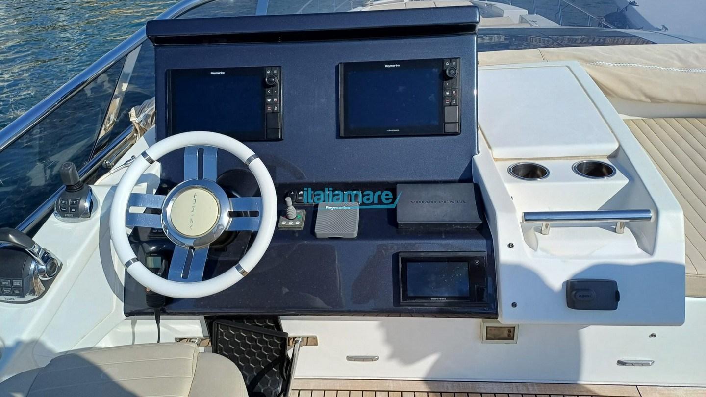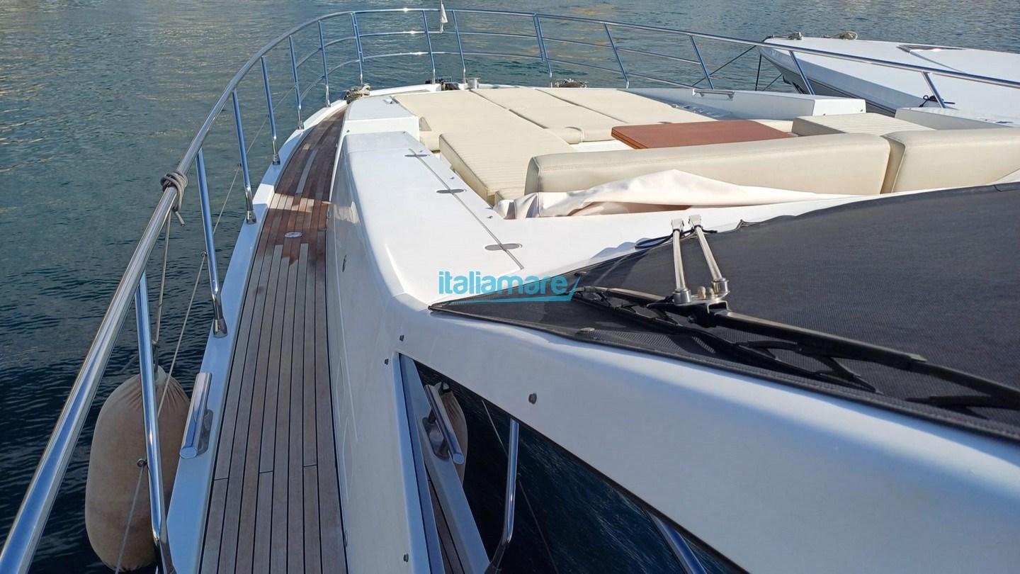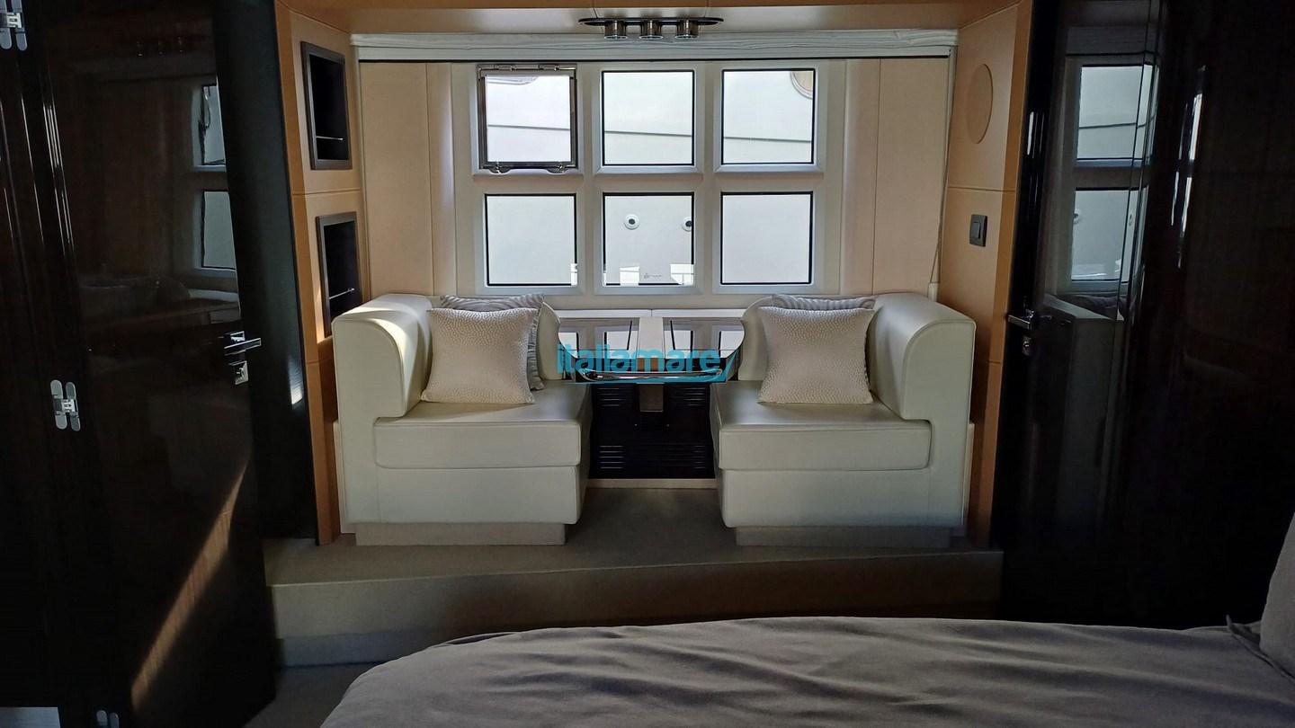 Engine Alarm, Bilge Alarm, 2 Water pressure pump, Teak Side Decks, Special Colour (CHAMPAGNE), Deck Shower, Twin Steering, Directional Spotlight, Electric Flaps, Tender Garage, Hard top, Fire Extinguishing System, Compressor Air System, Flaps Indicators, Anchor Chain Washdown, Courtesy Lights, Underwater lights, Gangway, Platform, Automatic Bilge Pump, Manual Bilge Pump, Side door, Teak Cockpit, Shorepower connector, Water harbor connector system, Electronic instrumentation repeater, Electric Windlass, swimming ladder, Stabilizers, cockpit table, Teak Deckhouse, Stern Winches, Bow Winches.