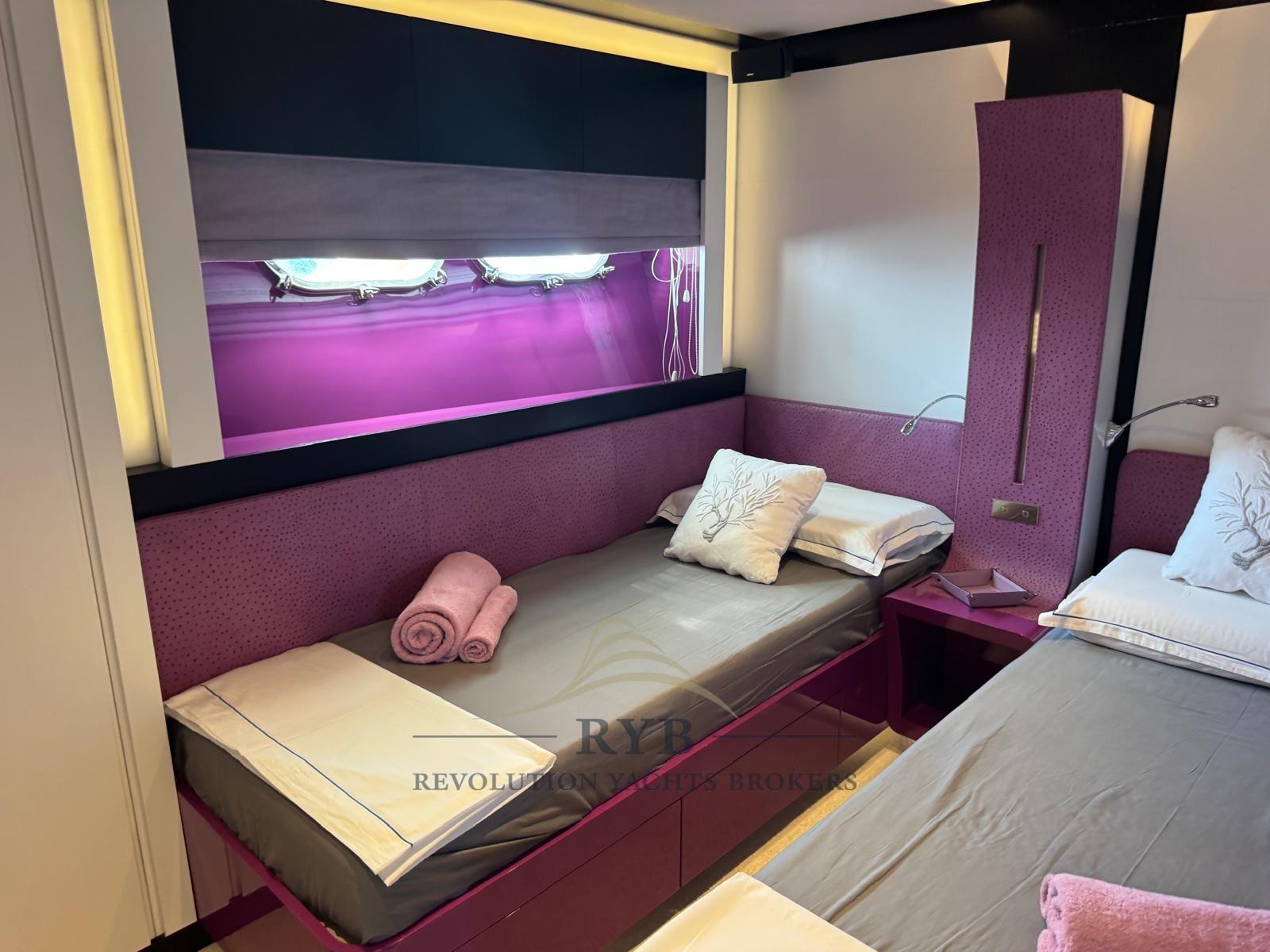 Teak Side Decks, Tender Garage, Fire Extinguishing System, Courtesy Lights, Gangway (IDRAULICA A SCOMPARSA), Platform (TEAK), Entry door, Teak Cockpit, Shorepower connector, Electric Windlass, swimming ladder.