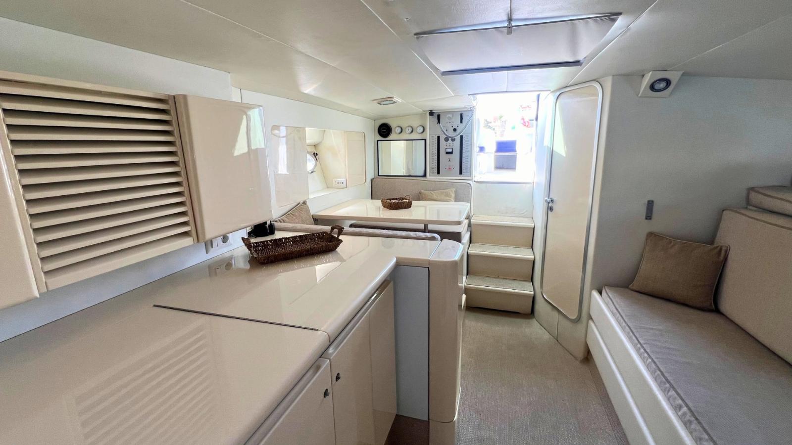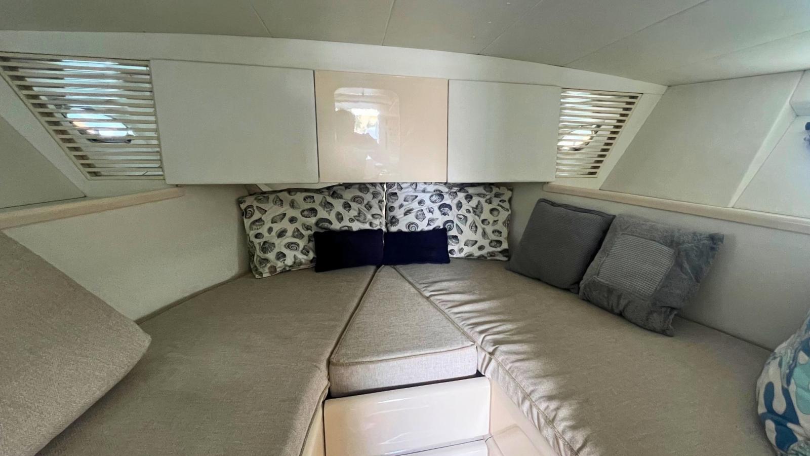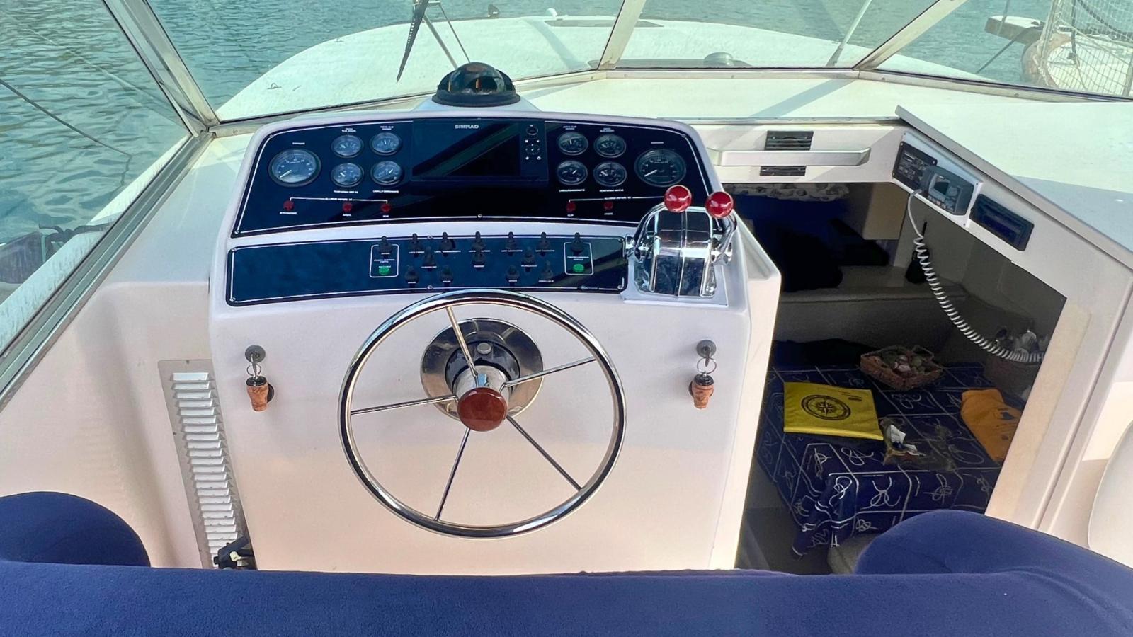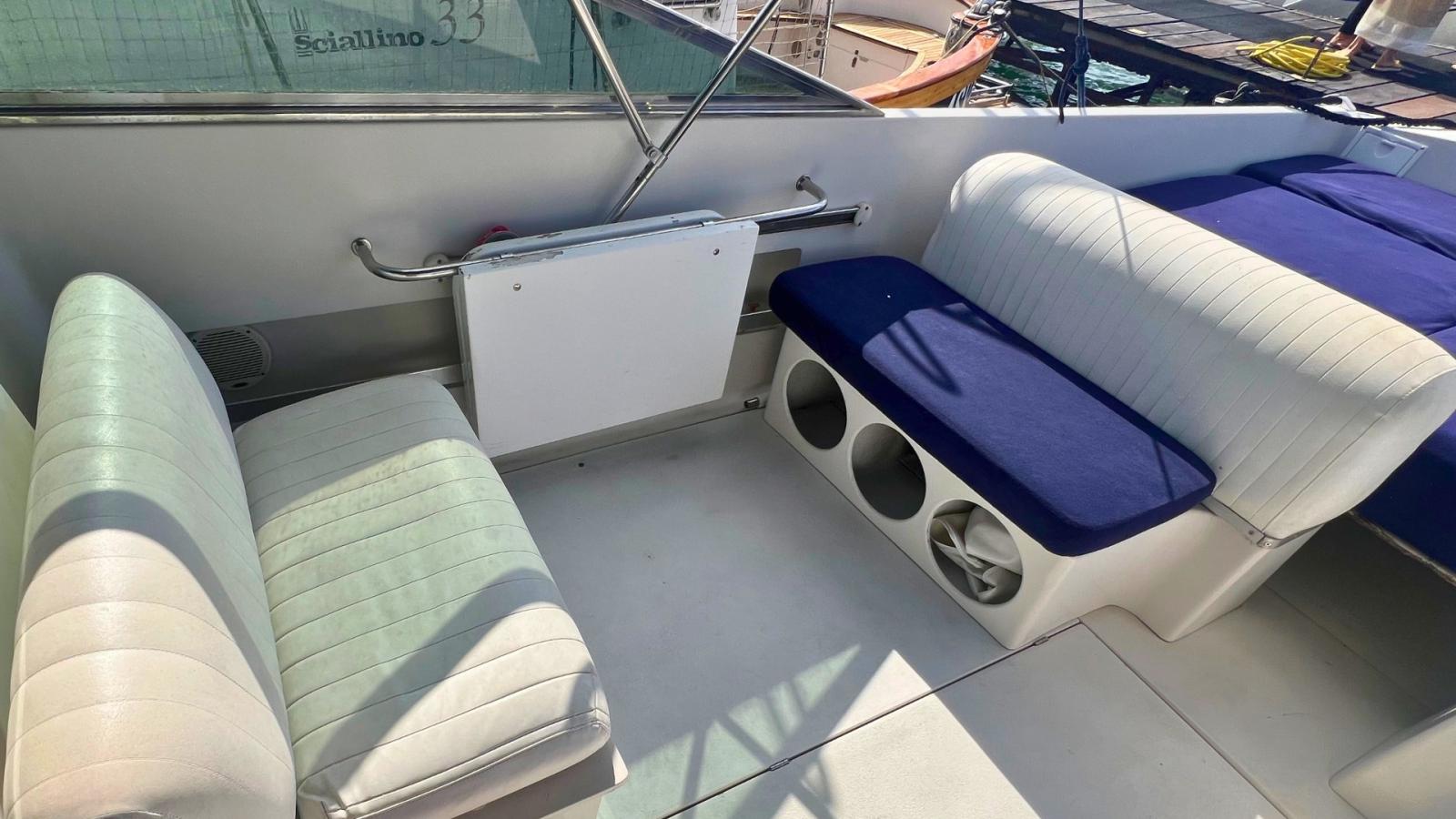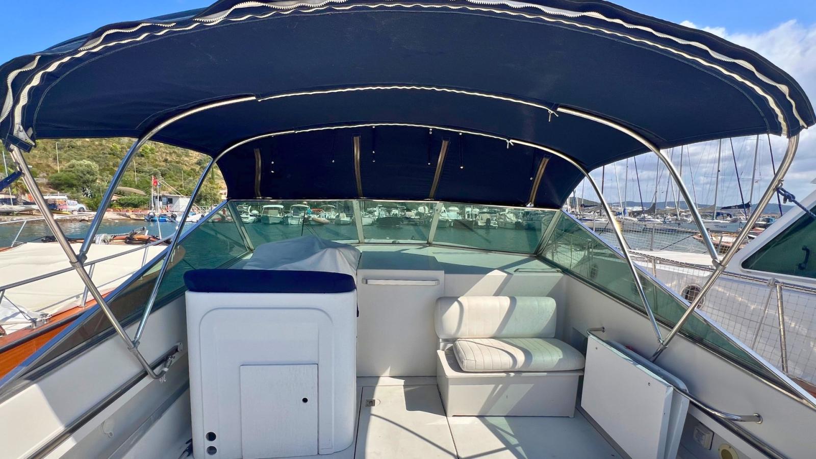 Itama 38, the iconic open of the Cantieri Navali di Roma: deep-V hull and sturdy GRP construction. Re-motorized in 2006 with 2 × Cummins 6BTA 5.9 (~370 HP ea), it offers safe and reliable driving. Recent updates: new tanks, redone helm station, renewed upholstery and updated safety system; on board new SIMRAD GPS and Paguro 5000 generator.