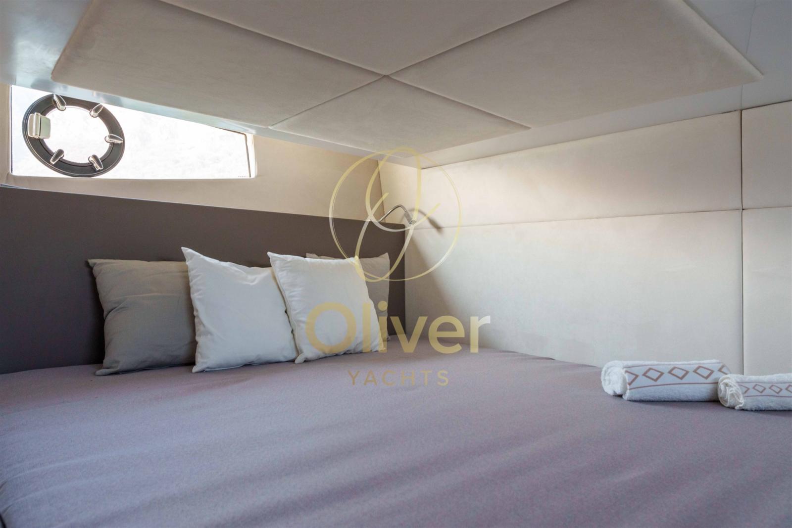 The owner's cabin, located in the bow, offers privacy and comfort worthy of a superior category yacht. At the stern is the VIP cabin, elegant and airy, with a double bed and a large wardrobe, designed to accommodate guests with the same care reserved for the owner.