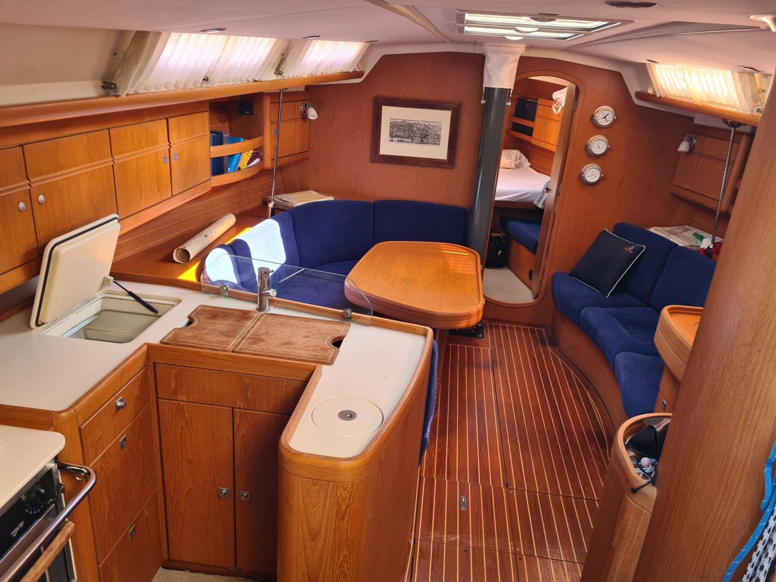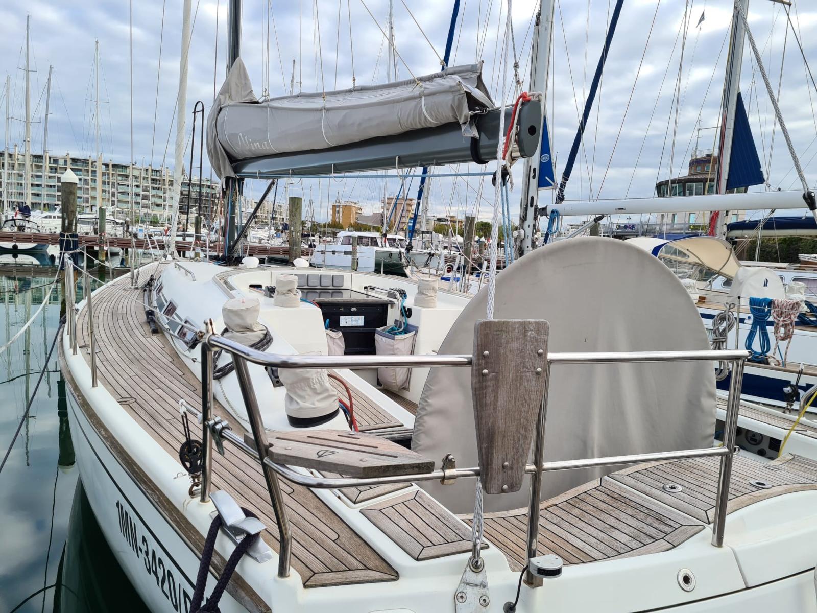 Engine Alarm, Water pressure pump, Life Raft (Arimar 8p), Batteries (servizi 2 x 210Ah + motore 1 x 130Ah + elica di prua 2 x 80Ah), Teak Side Decks, Battery charger (Mastervolt), Deck Shower, Bow Thruster (Max power), Directional Spotlight, Courtesy Lights, Solar panels (2 x 120 W), Gangway, Automatic Bilge Pump, 2 Electric Bilge Pump, Manual Bilge Pump, Teak Cockpit, Shorepower connector, Voltage Rectifier, Electric Windlass (Quick 201), Rod rigging (nuovo 2023), swimming ladder, Outboard Engine Support Bracket, Tender (Zodiac 240 con FB Yamaha 4hp 4T), guard rails with gates, Winch (2 x 60), Winch Electric (2 x 48 + 2 x 53), Windex.