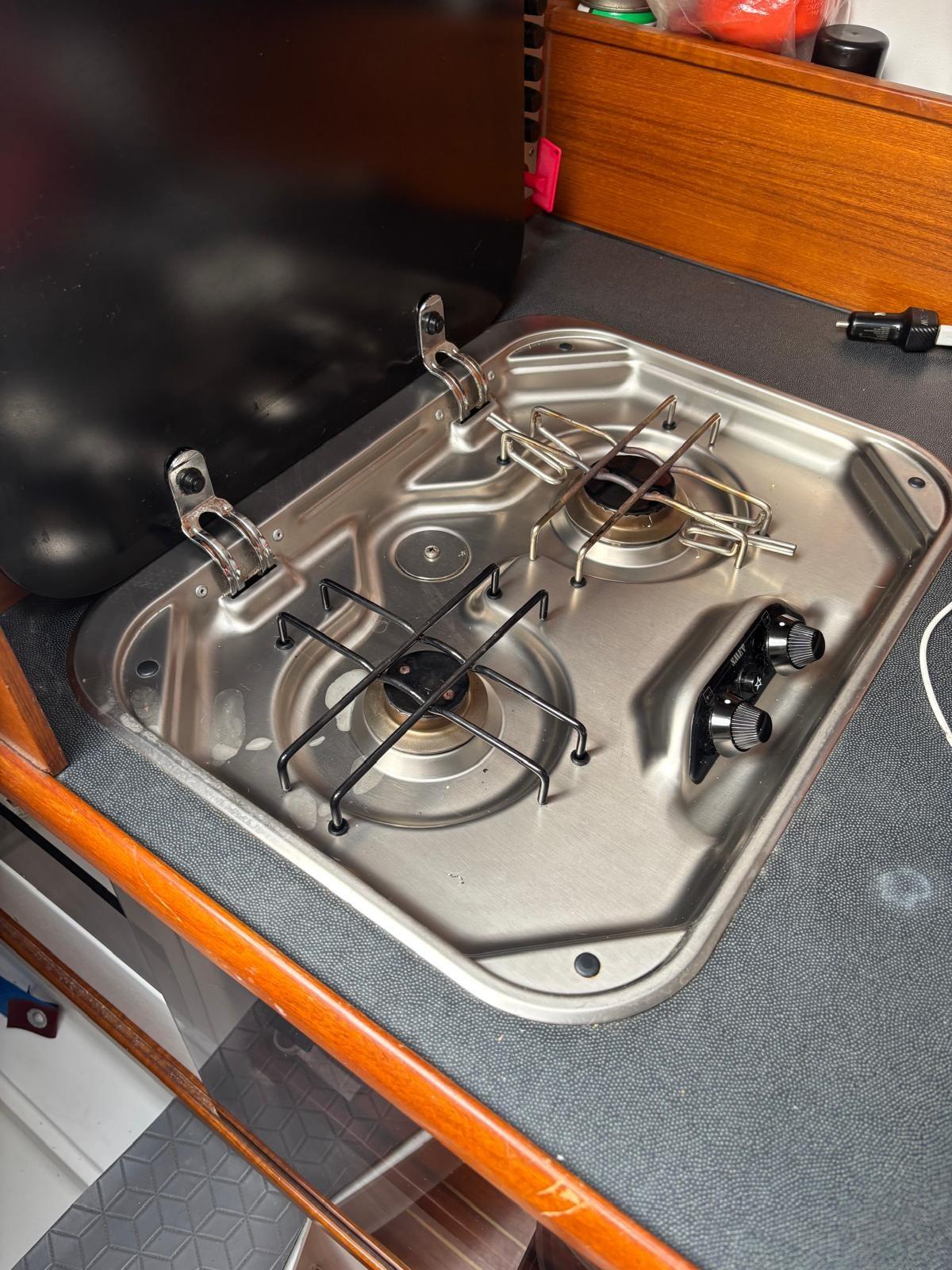 Galley, Burner (2 fuochi), Refrigerator (45l).