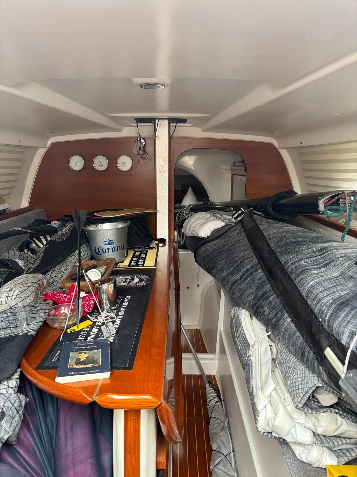 2 Anchor (ancore manuali), Water pressure pump, Trailer (Harbeck per trasporto), Shore power cable, Deck Shower, Courtesy Lights, Solar panels, Fenders, Platform, Manual Bilge Pump, Shorepower connector, Strand rigging, swimming ladder, cockpit table.