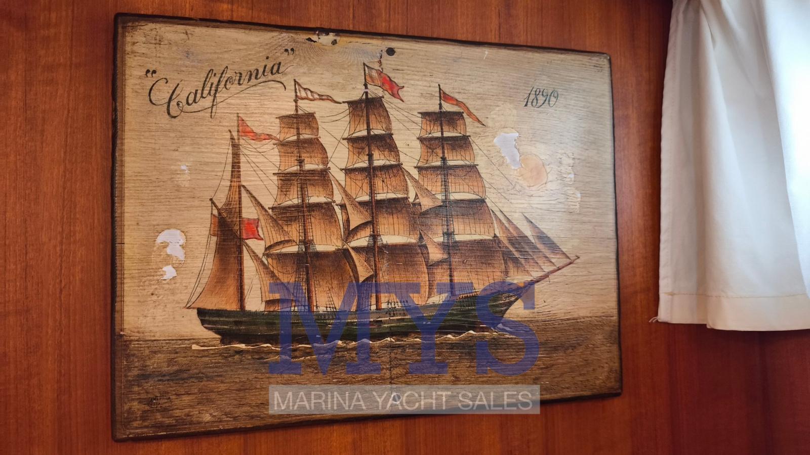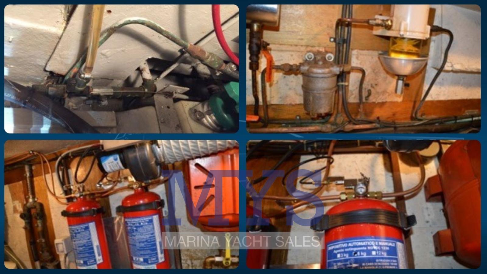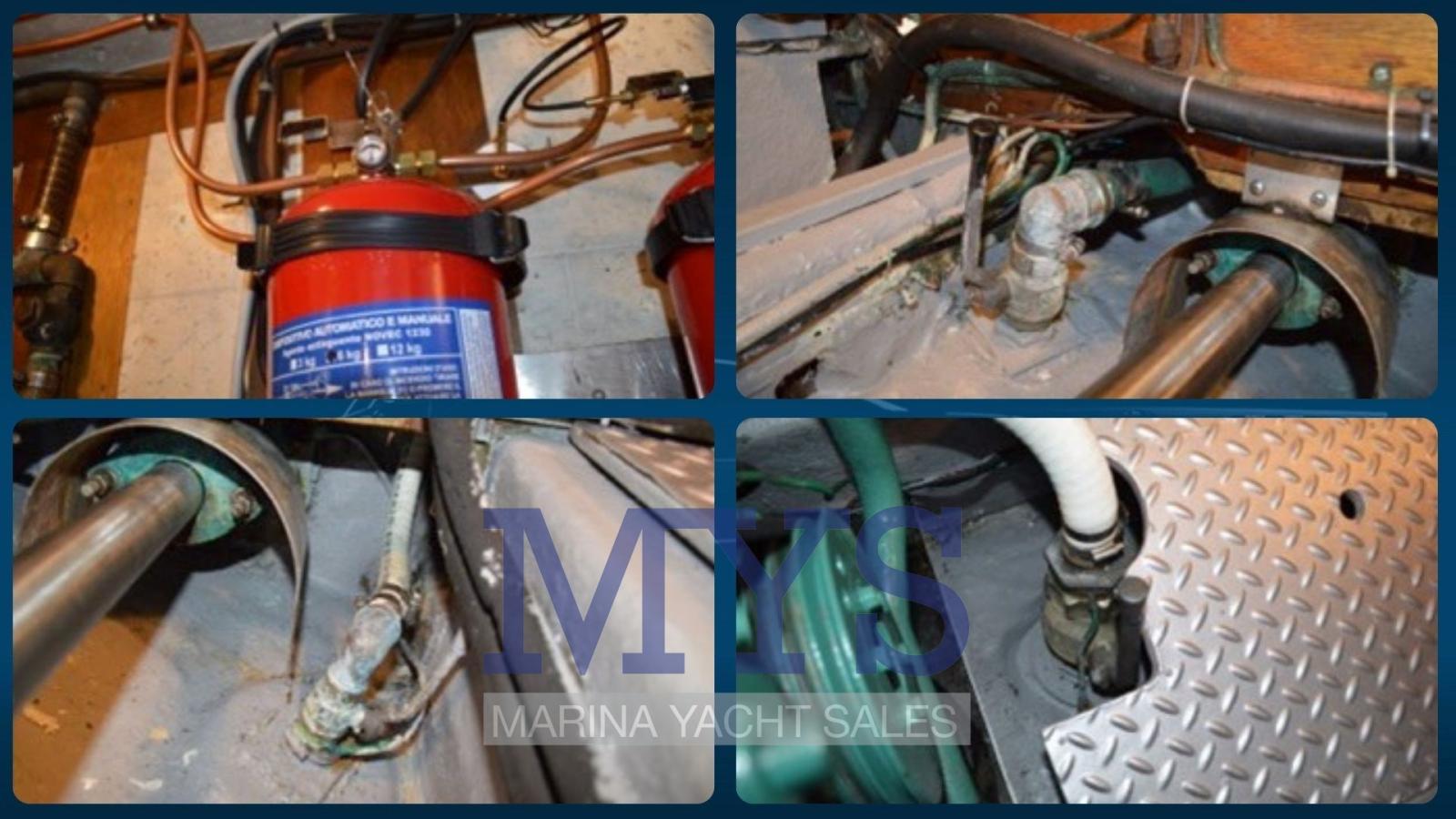 Engine Alarm, Bilge Alarm, Anchor (Delta 16 kg + 85 mt. di catena in inox), Water pressure pump, Life Raft (6 posti), 6 Batteries (x 200 Ah), Teak Side Decks, Deck Shower, Twin Steering, Secondary Propeller, Hydraulic Flaps, Tender Crane, Fire Extinguishing System, Anchor Chain Washdown, Courtesy Lights (led), Gangway, Platform (in Teak), Automatic Bilge Pump, Manual Bilge Pump, 2 Side door, Teak Cockpit, Shorepower connector, Water harbor connector system, Electronic instrumentation repeater, Electric Windlass, Gang Board (rimovibile), swimming ladder, Outboard Engine Support Bracket, 2 cockpit table, Living Room Foldable Table, guard rails with gates, Horn, Teak Deckhouse.
