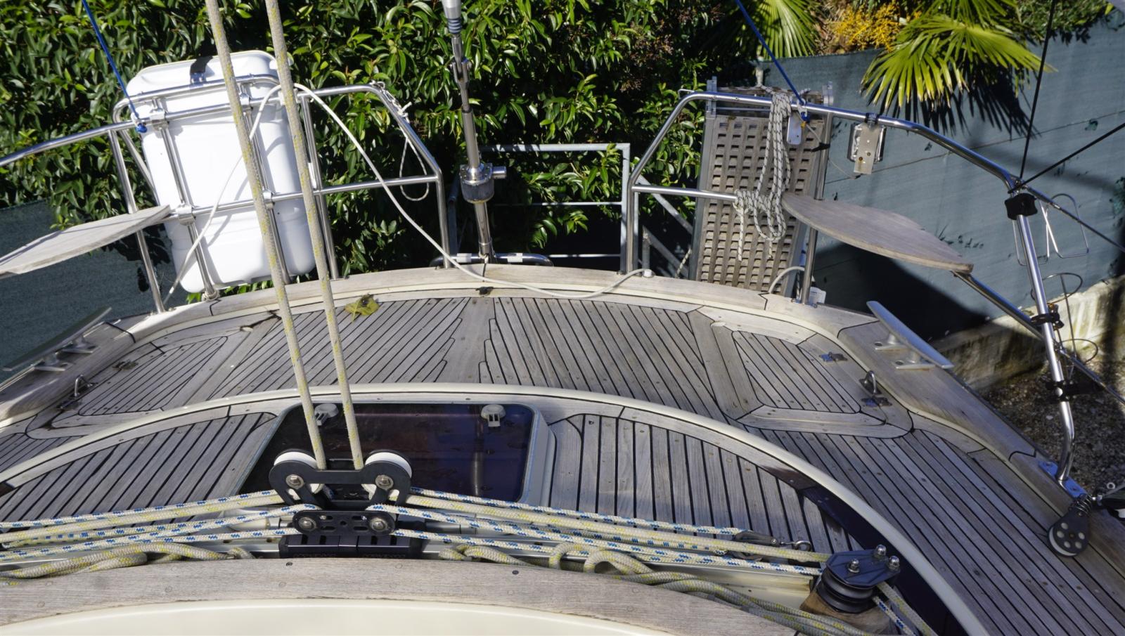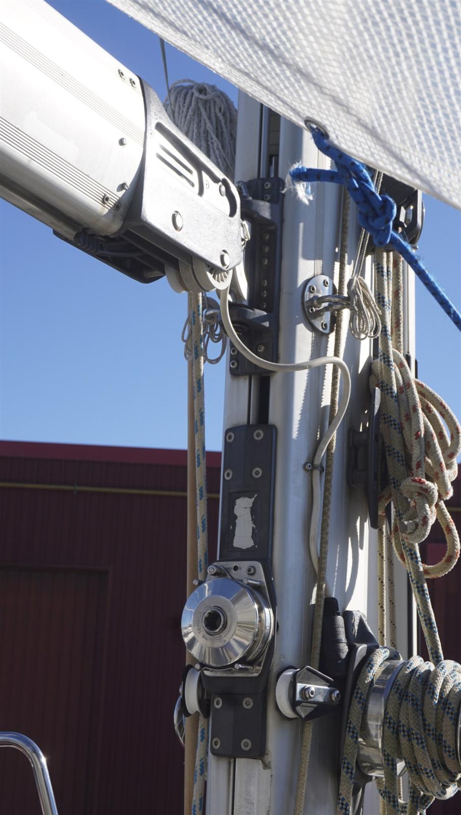 Gennaker equipment, Spi Equipment (+ 2 spi poles), Jib Furling System (2 x), Mainsail Furling System, Staysail forestay (+ furler), Rope cutter, Mainsheet traveller, Vang.