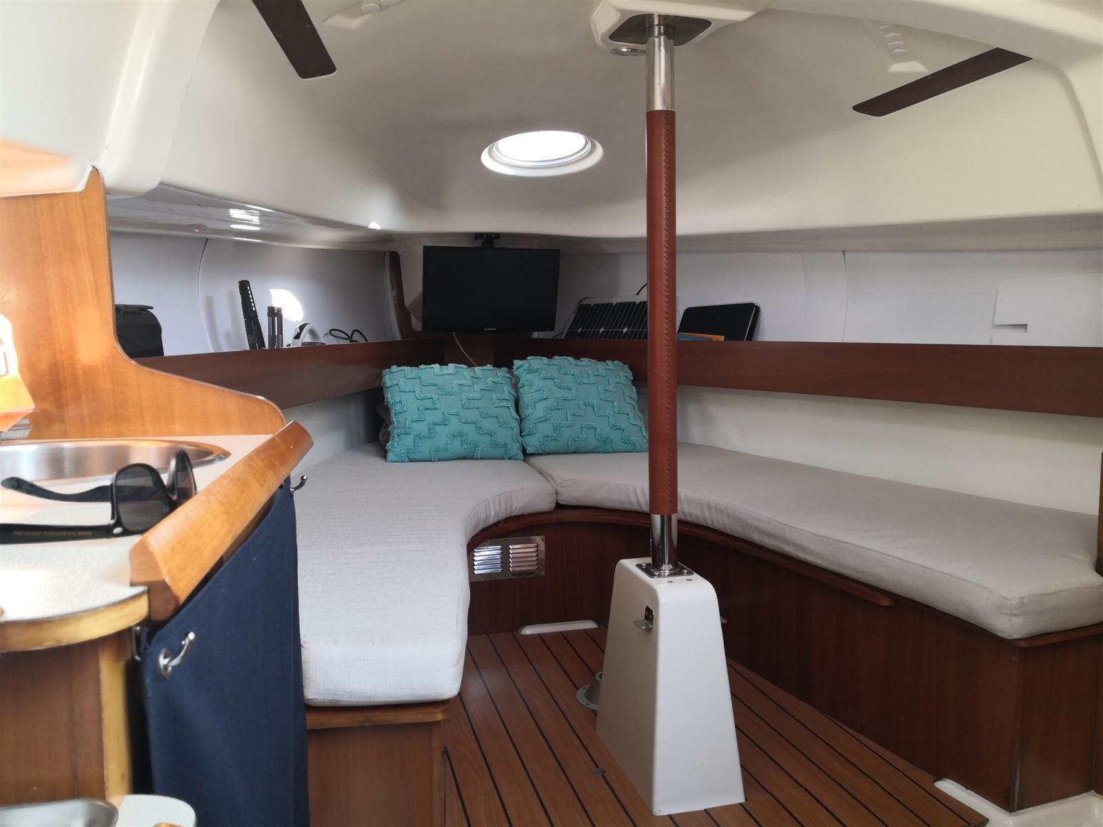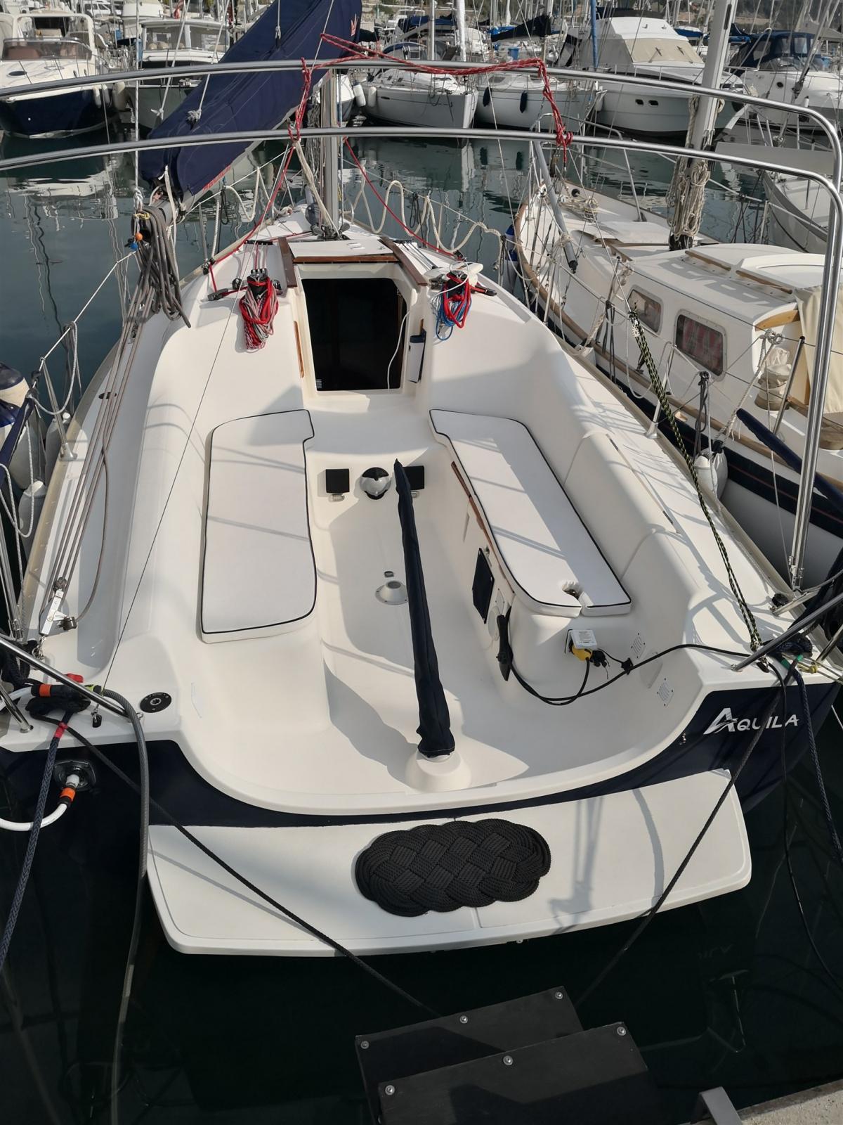 Open space with 2 double berths. 1 bathroom with manual toilet. New Raymarine electronics (2025). Blue hull. New shrouds (2025). New halyards and sheets (2025). New seacocks and through-hulls (2025). LED lights (2025). New cushions (2025).