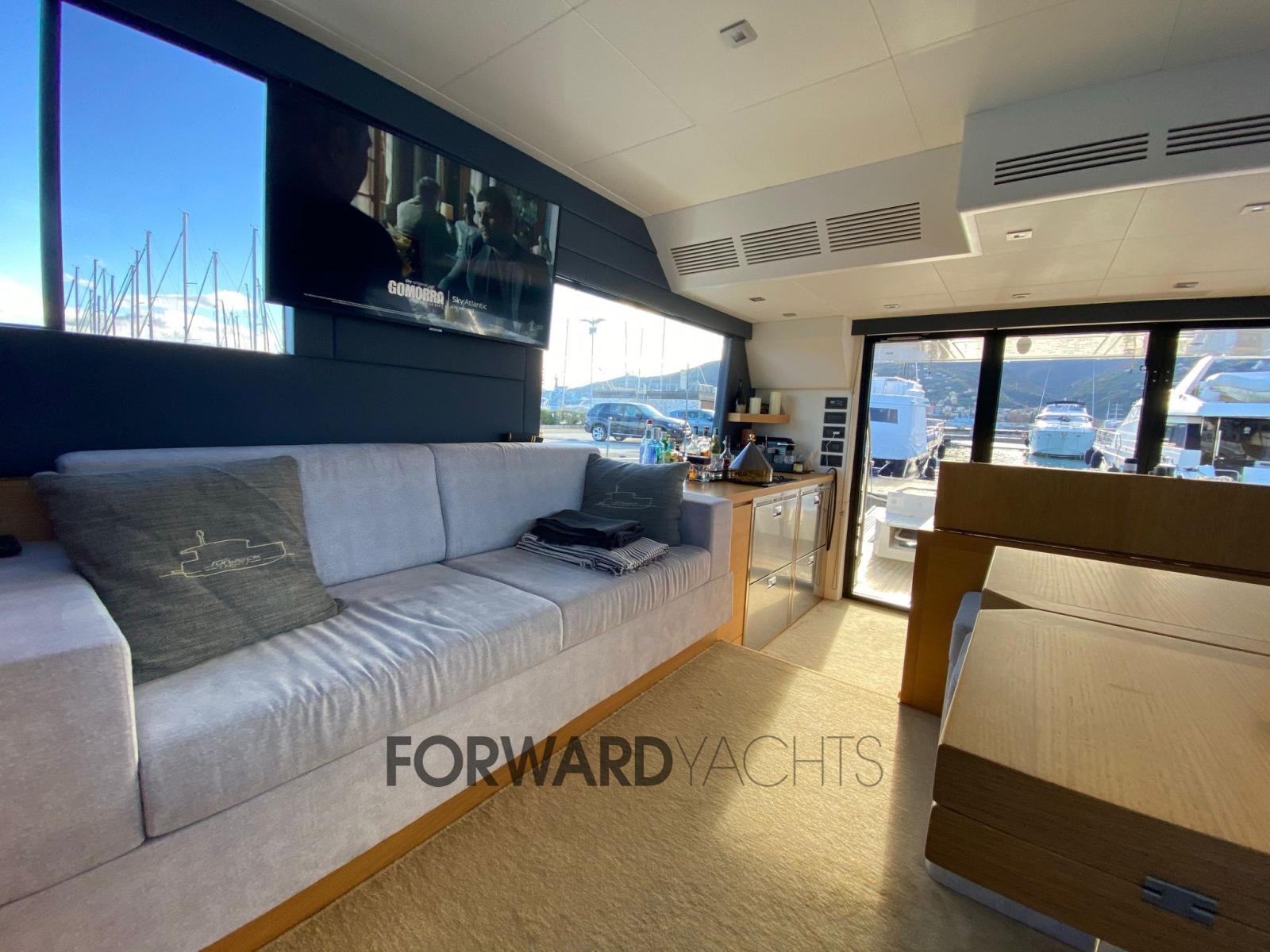 Water pressure pump, Teak Side Decks, Deck Shower, Twin Steering, Hydraulic Flaps, Courtesy Lights, Underwater lights, Gangway (Idraulica), Platform (Idraulica), Teak Cockpit, Electric Windlass, cockpit table.