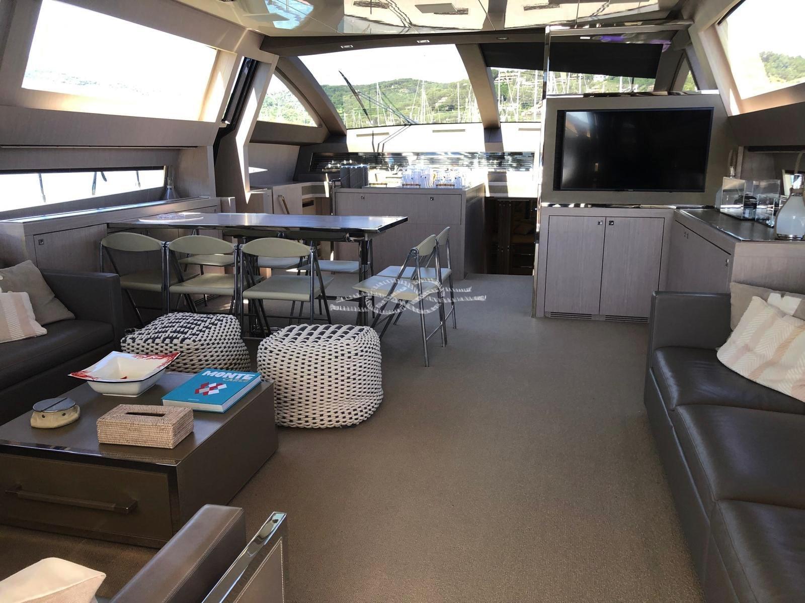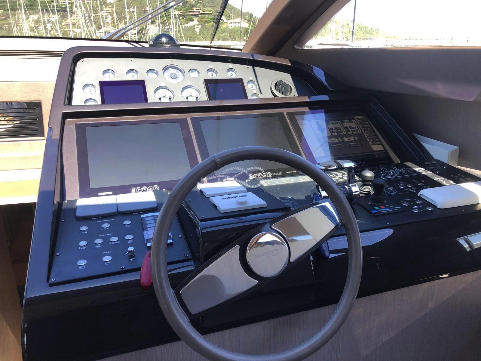 Two Seakeeper 9 stabilizers - ABTrac hydraulic bow and stern thrusters - retractable electro-hydraulic gangway - double anchor - tender lift stern platform - tender garage for tender and jet skis - Williams 385 jet tender - satellite TV antenna - LCD TV - stereo - air conditioning Condaria hot/cold - 2 x 28 kW Kohler generators - third control station at the stern - Miele 4-burner induction hob - Miele oven - fridge - freezer - Bosh dishwasher - ice maker - fridge outdoor - wet bar in the cockpit with sink and grill - washing machine dryer - Idromar watermaker.