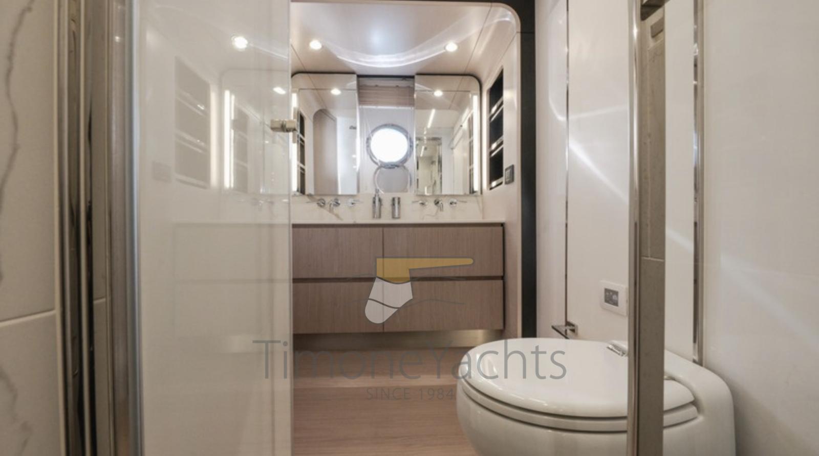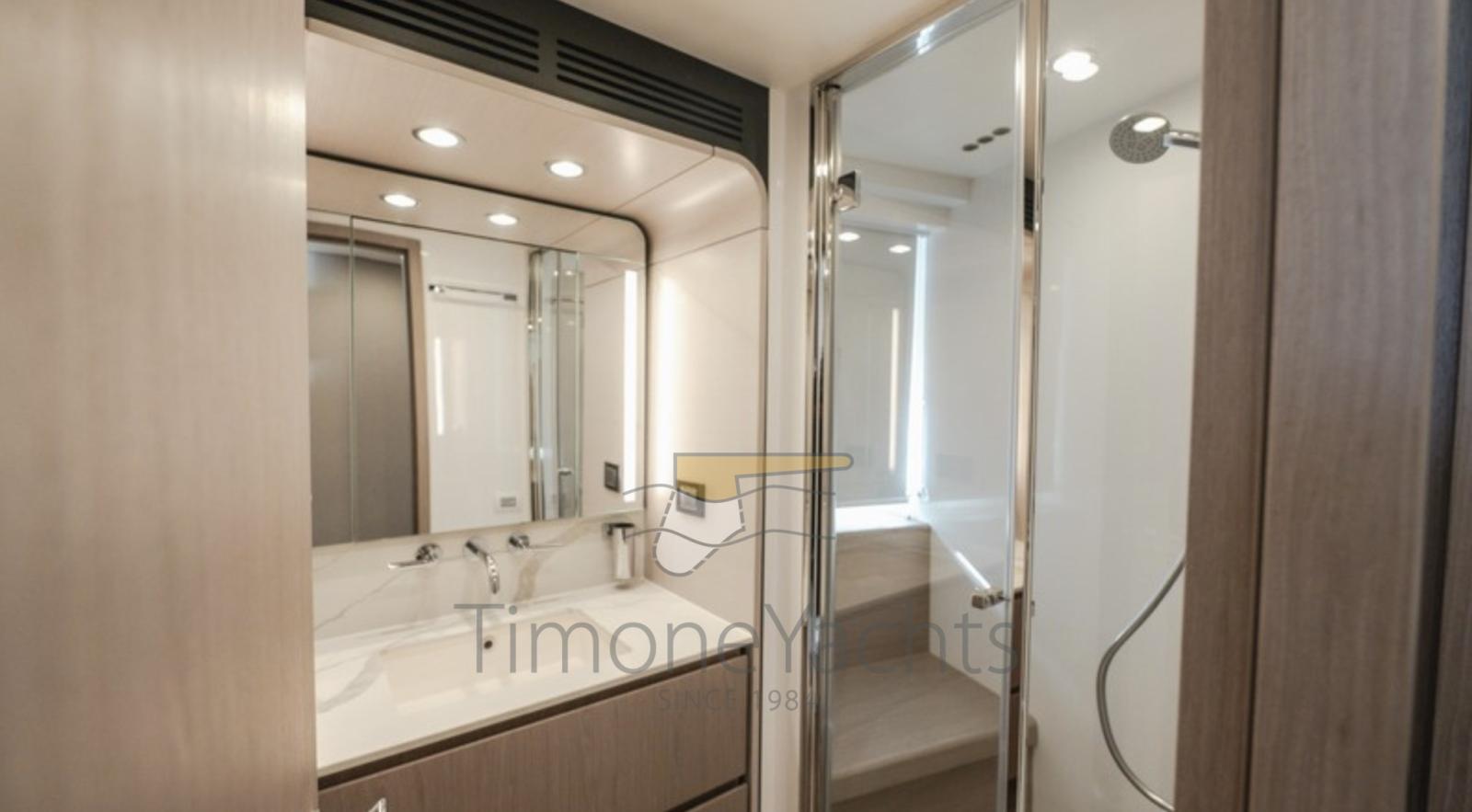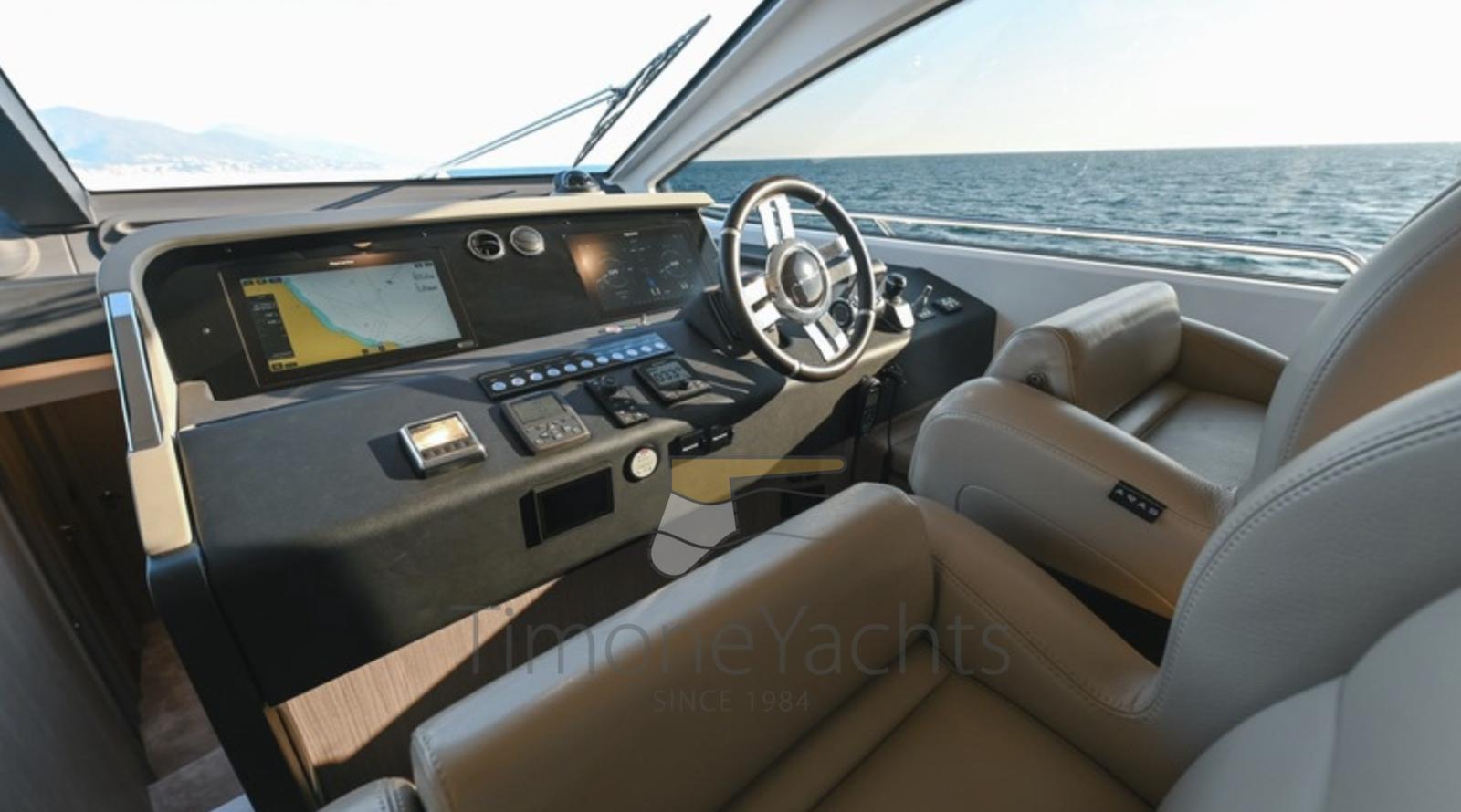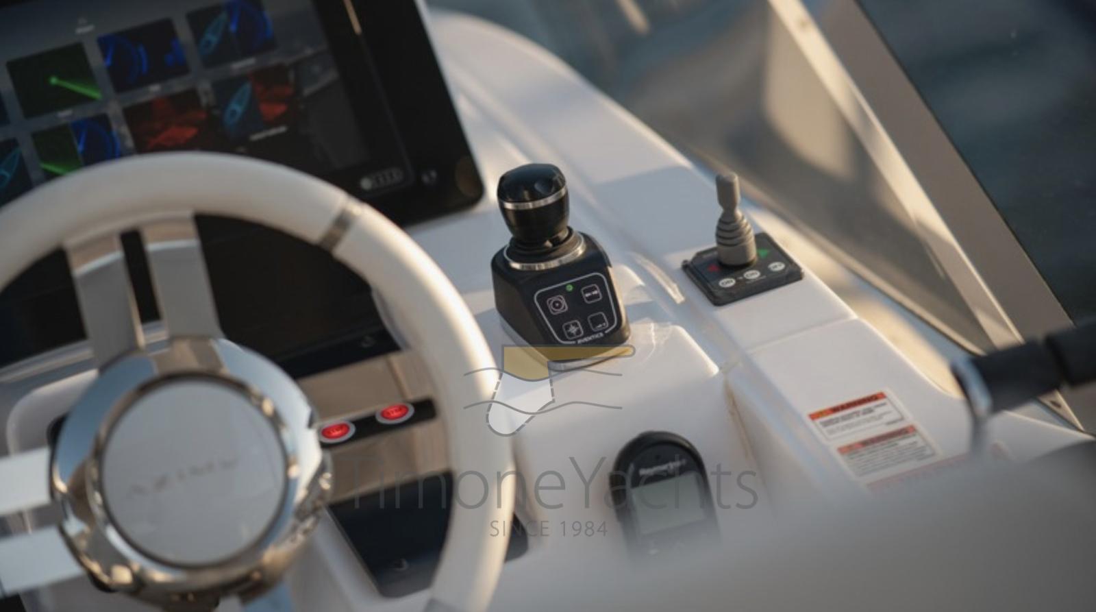 Fume/Gas Detector, Engine Alarm, Bilge Alarm, Alternator, Auto Dynamic Trim Interceptor, Water pressure pump, Teak Side Decks, Shore power cable, Deck Shower, Twin Steering, Electric Flaps, Hard top, Flaps Indicators, Anchor Chain Washdown, Washbasin in the cockpit, Courtesy Lights, Underwater lights, Fenders, Gangway, Platform, Automatic Bilge Pump, Teak deck, Entry door, Side door, Teak Cockpit, Shorepower connector, Water harbor connector system, Electric Windlass, swimming ladder, Stabilizers (Seakeeper 18), cockpit table, Tender (Tender 3.9m, 5 seater Technorib PIRELLI J39), guard rails with gates, Horn, Stern Winches, Bow Winches.