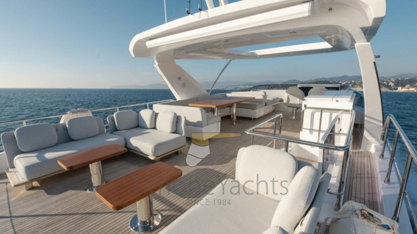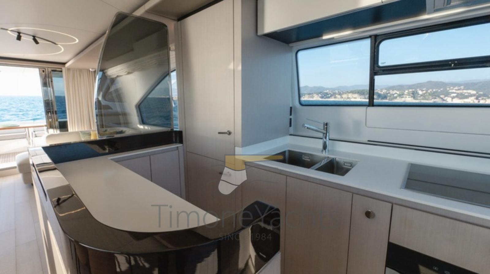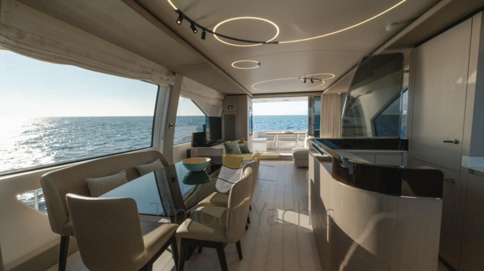 Fume/Gas Detector, Engine Alarm, Bilge Alarm, Alternator, Auto Dynamic Trim Interceptor, Water pressure pump, Teak Side Decks, Shore power cable, Deck Shower, Twin Steering, Electric Flaps, Hard top, Flaps Indicators, Anchor Chain Washdown, Washbasin in the cockpit, Courtesy Lights, Underwater lights, Fenders, Gangway, Platform, Automatic Bilge Pump, Teak deck, Entry door, Side door, Teak Cockpit, Shorepower connector, Water harbor connector system, Electric Windlass, swimming ladder, Stabilizers (Seakeeper 18), cockpit table, Tender (Tender 3.9m, 5 seater Technorib PIRELLI J39), guard rails with gates, Horn, Stern Winches, Bow Winches.