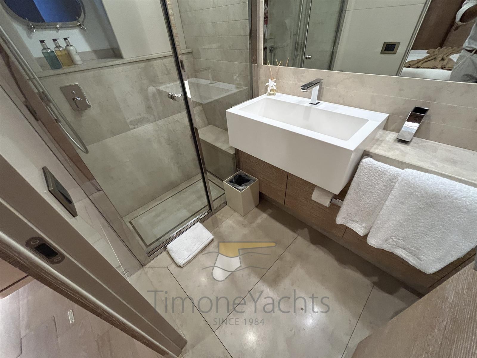 The Navetta 33 boasts a tri-deck layout with the typica 5 guests cabins configuration, with the master up front on main deck and the remaining 4 down on lower deck. The crew quarter is conveniently accessible from the galley.