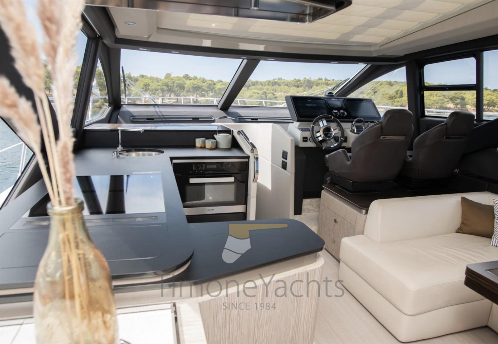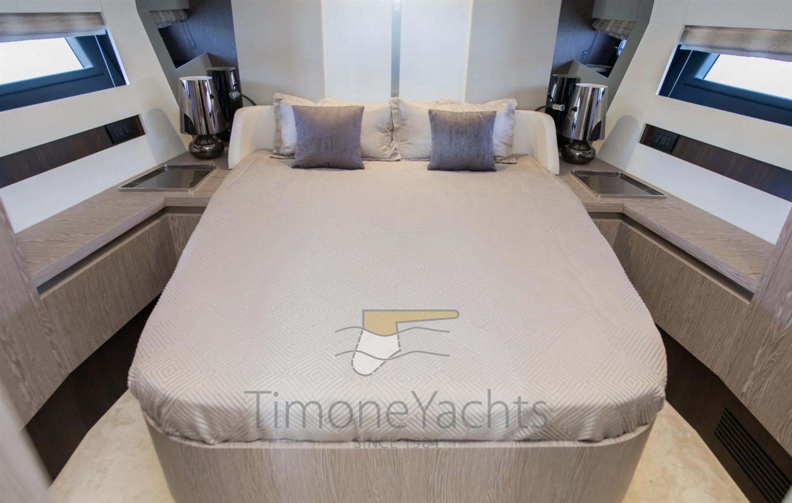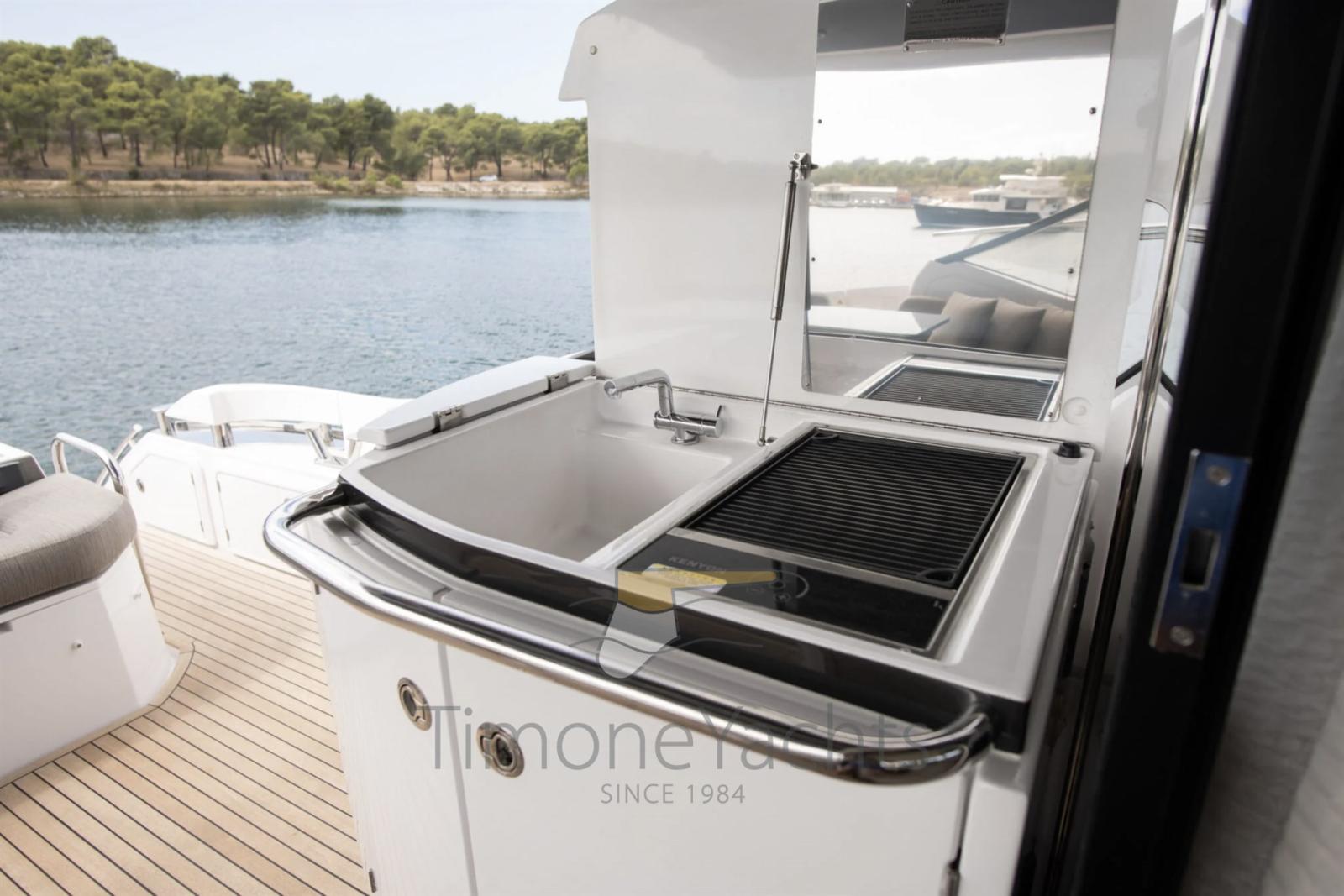 Teak Side Decks, Deck Shower, Headlights fixed on the stem, Directional Spotlight, Hydraulic Flaps, Tender Garage, Hard top, Fire Extinguishing System, Flaps Indicators, Anchor Chain Washdown, Washbasin in the cockpit, Underwater lights, Gangway, Teak Cockpit, Shorepower connector, Water harbor connector system, Stabilizers (Seakeeper NG9), cockpit table, Tender (Williams 345), Stern Winches, Bow Winches.