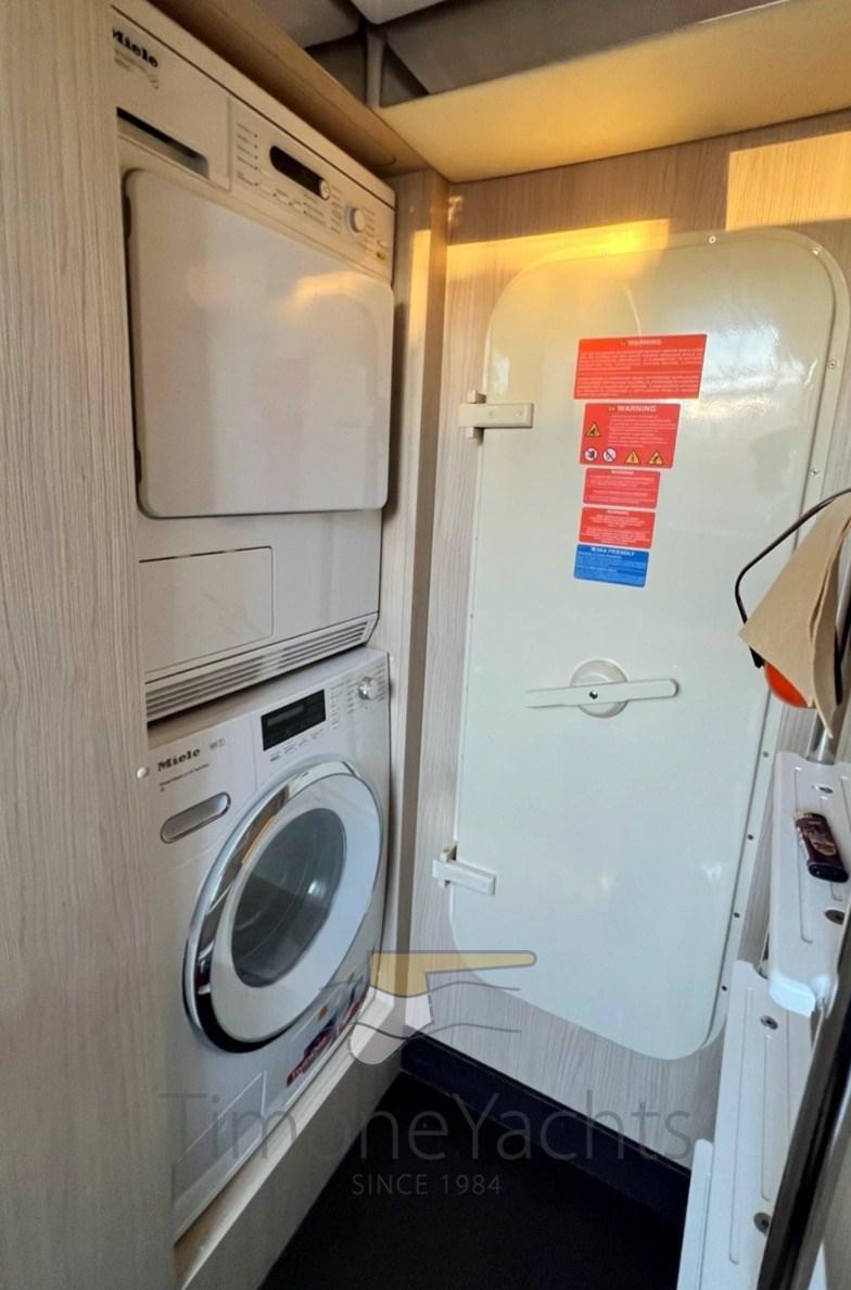 BBQ/Grill (on fly), Warm Water System, Inverter Air Conditioning, Light Dimmer, Watermaker, Waste Water Plant, Interior wooden floor, 12V Outlets, 220V Outlets, Black Water Tank, 4 Electric Toilet (+ crew).
