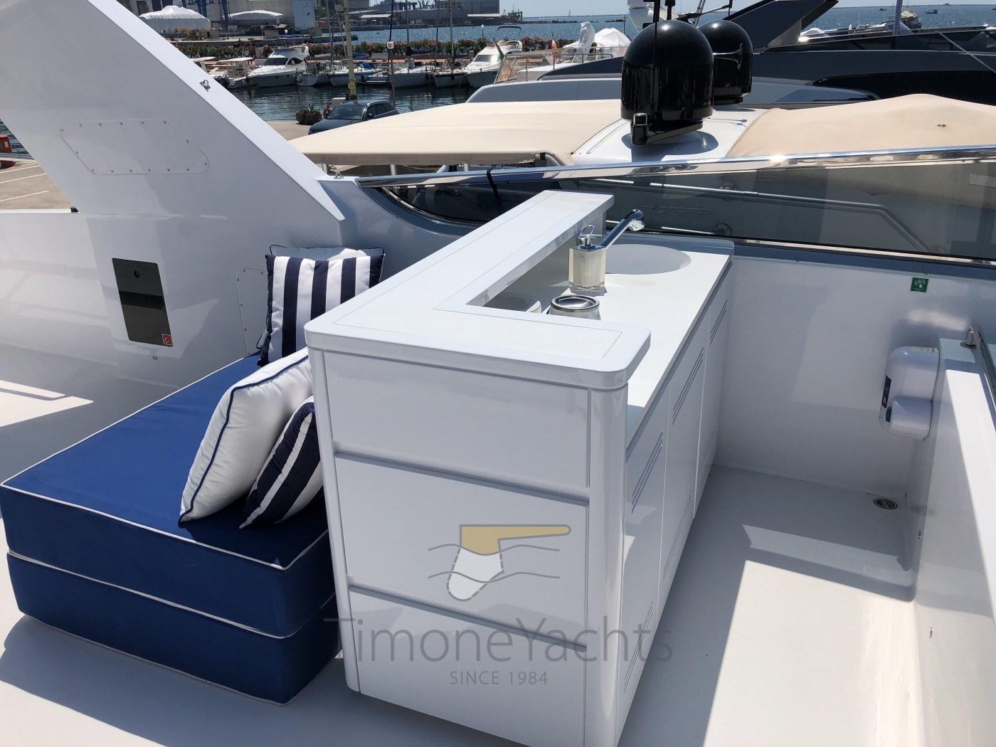 Auto-Trim, Deck Shower, Electric Flaps, Davits for tender on fly, Fire Extinguishing System, Flaps Indicators, Anchor Chain Washdown, Gangway, 2 Side door, Teak Cockpit, Shorepower connector, Water harbor connector system, Waste Water Purifier System, Stabilizers (Seakeeper NG26), cockpit table, Tender, Horn, 2 Stern Winches, Bow Winches.