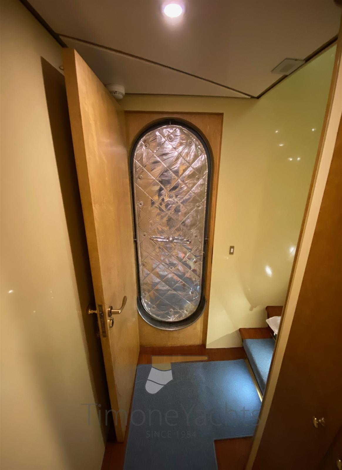 Teak Side Decks, Deck Shower, Headlights fixed on the stem, Directional Spotlight, Fire Extinguishing System, Anchor Chain Washdown, Courtesy Lights, Gangway, 2 Side door, Teak Cockpit, Shorepower connector, 2 Saddles for tender, Stabilizers (fins underway), cockpit table, 2 Tender, 2 Stern Winches, 2 Bow Winches.