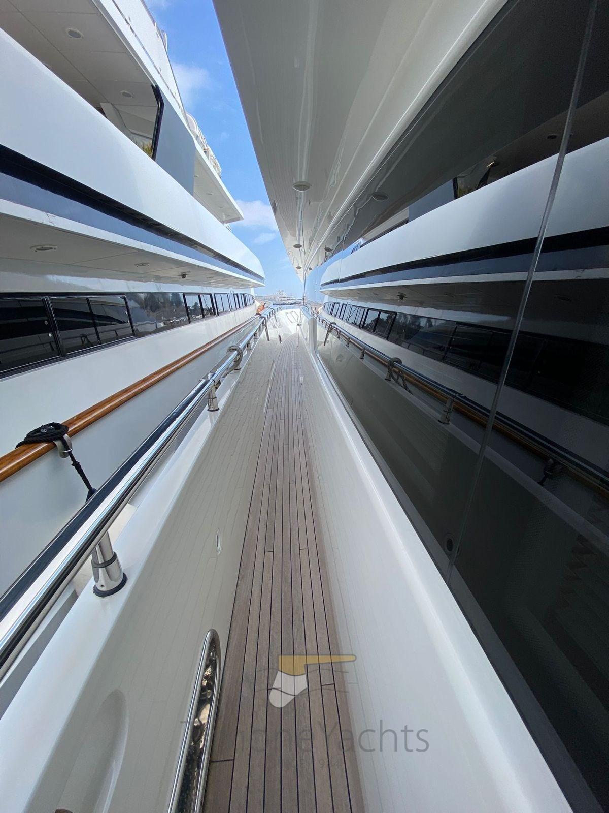 Bilge Alarm, Water pressure pump, Teak Side Decks, Deck Shower, Directional Spotlight, Hydraulic Flaps, Crane, Hard top, Fire Extinguishing System, Compressor Air System, Anchor Chain Washdown, Underwater lights, Platform, Teak Cockpit, Voltage Rectifier, Electric Windlass, swimming ladder, Waste Water Purifier System, Stabilizers (Mitsubishi Zero Speed Stabilizers), Tender (Williams Jet Tender), Stern Winches, Bow Winches.