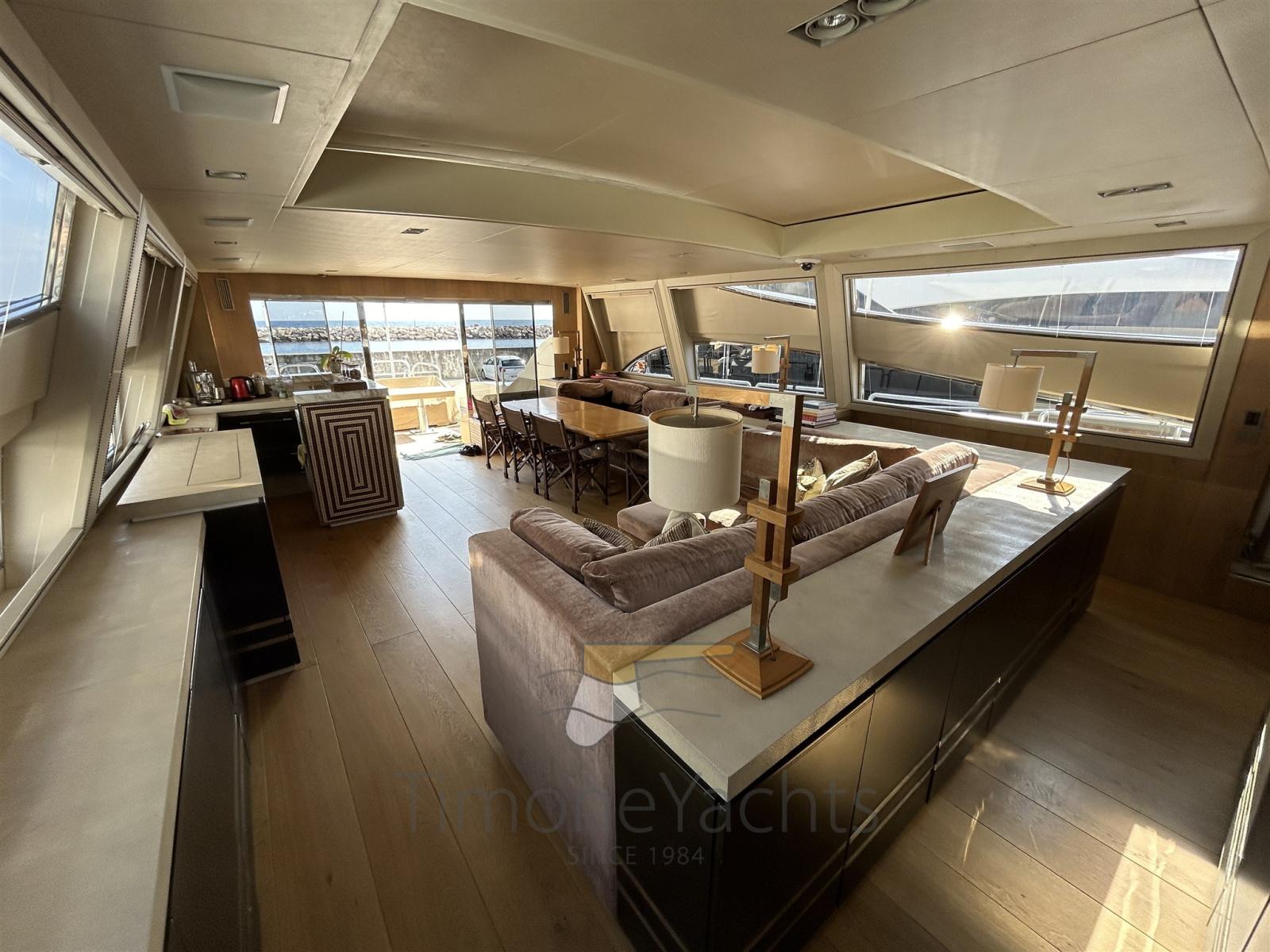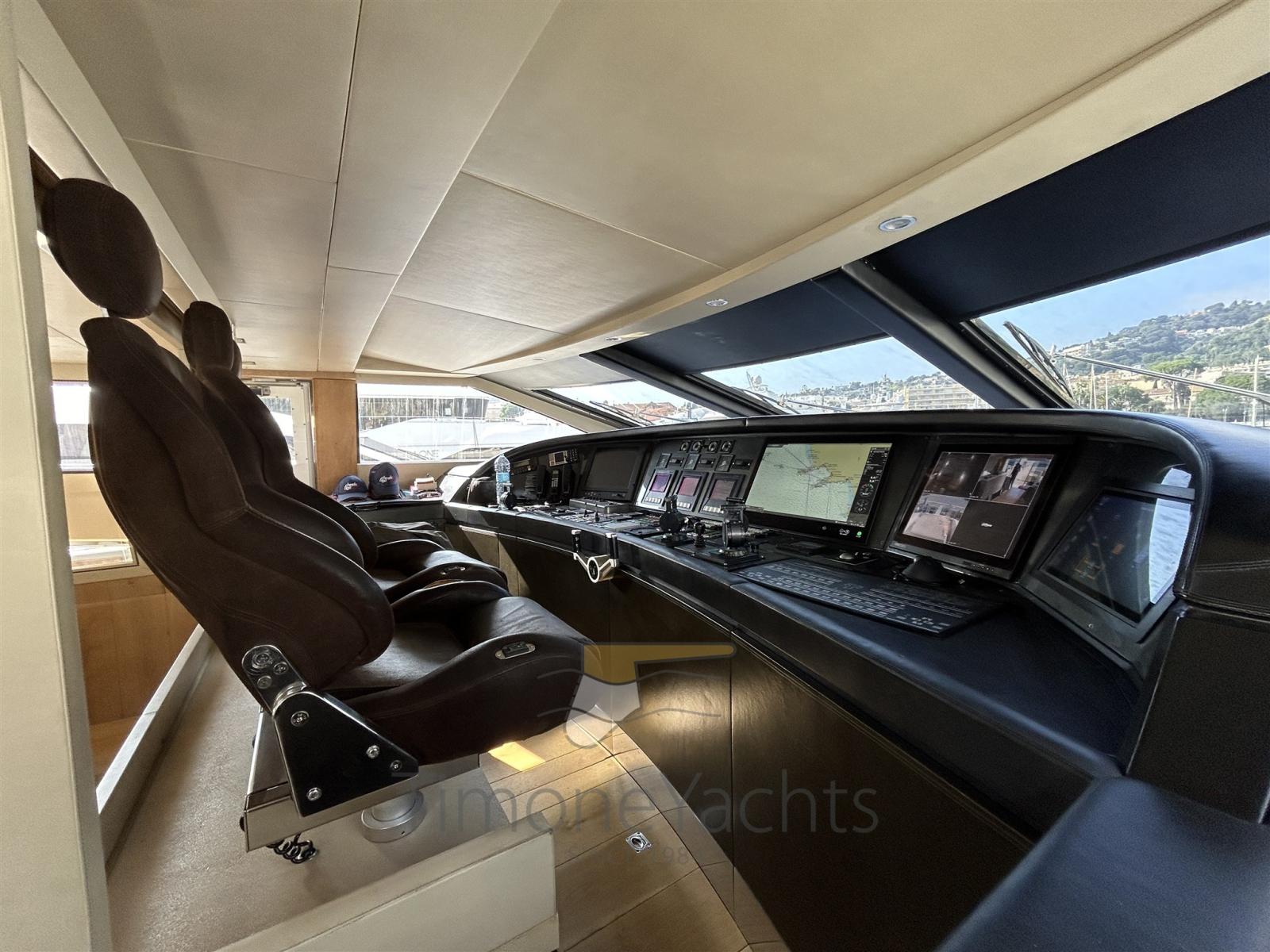 Auto-Trim, Teak Side Decks, Deck Shower, Directional Spotlight, Hydraulic Flaps, Tender Garage, Hard top, Fire Extinguishing System, Flaps Indicators, Courtesy Lights, Underwater lights, Jet-Ski, Gangway, Entry door, Side door, Teak Cockpit, Shorepower connector, swimming ladder, cockpit table, Horn, Stern Winches.
