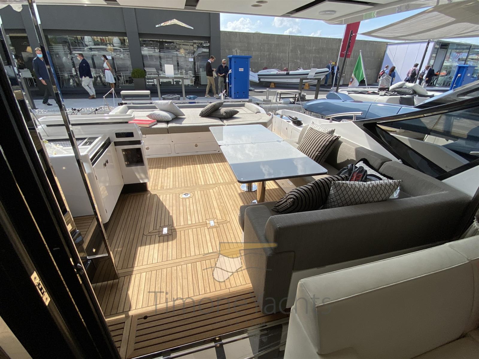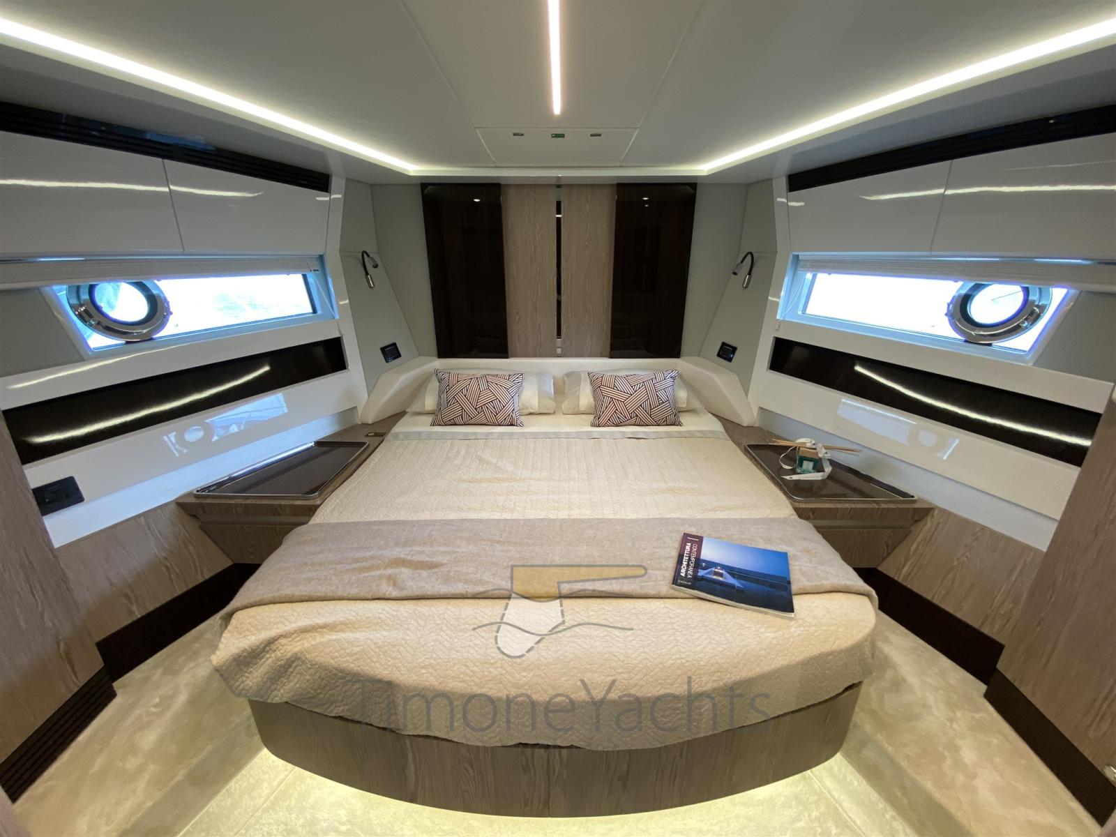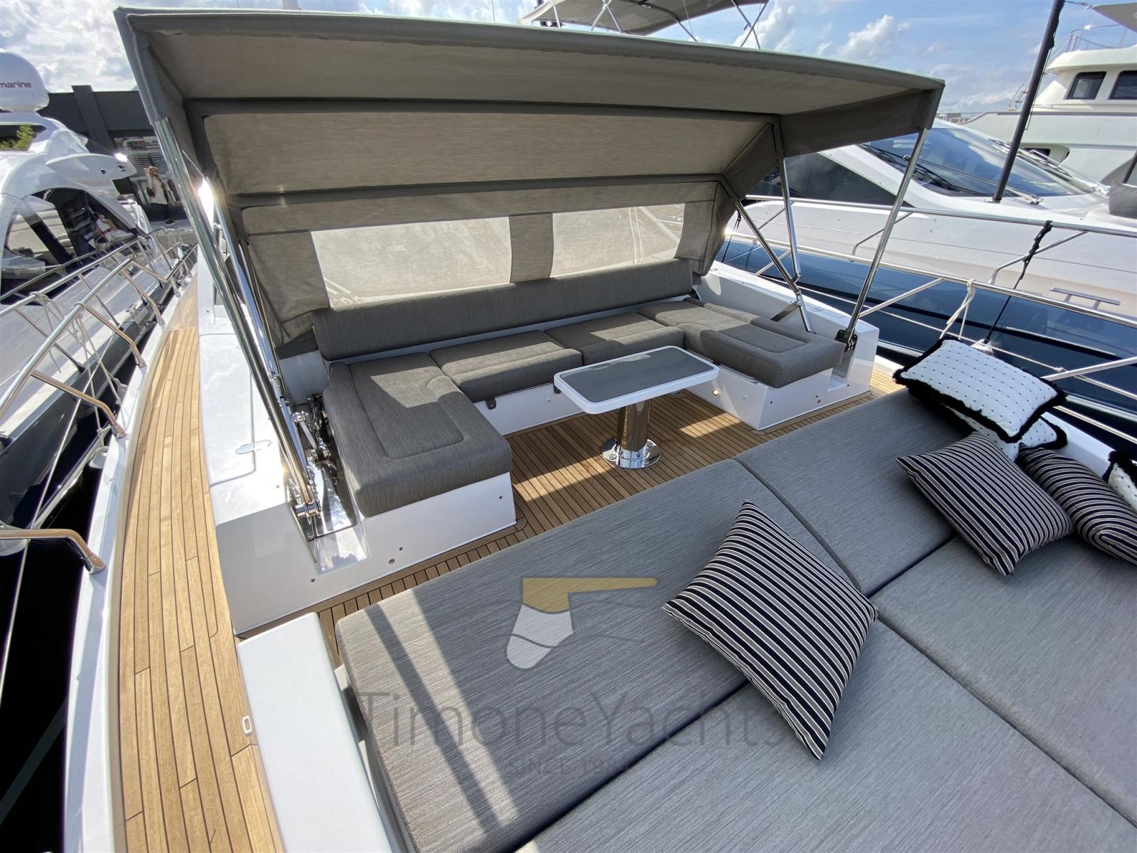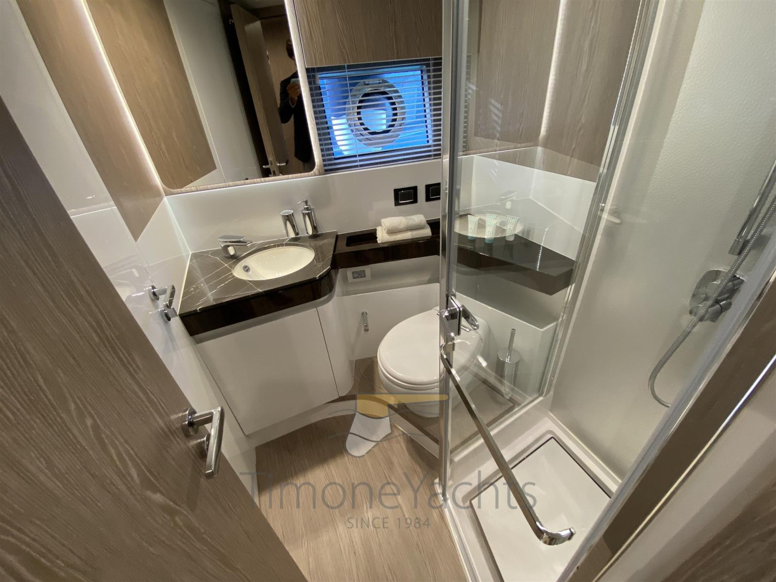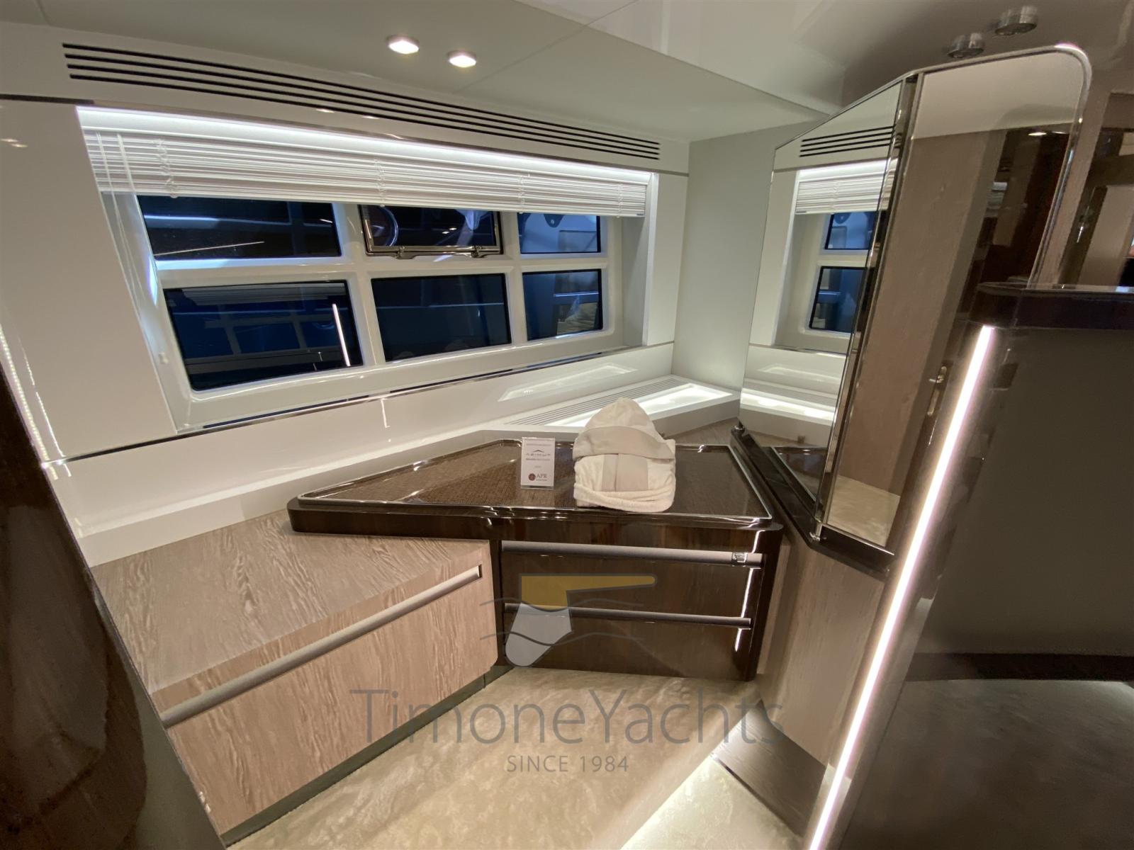 Auto Dynamic Trim Interceptor, Teak Side Decks, Shore power cable, Deck Shower, Directional Spotlight, Tender Garage, Fire Extinguishing System, Anchor Chain Washdown, Courtesy Lights, Underwater lights, Gangway, Teak deck, Teak Cockpit, Shorepower connector, Stabilizers (Seakeeper), cockpit table, Horn, 2 Stern Winches, Bow Winches.