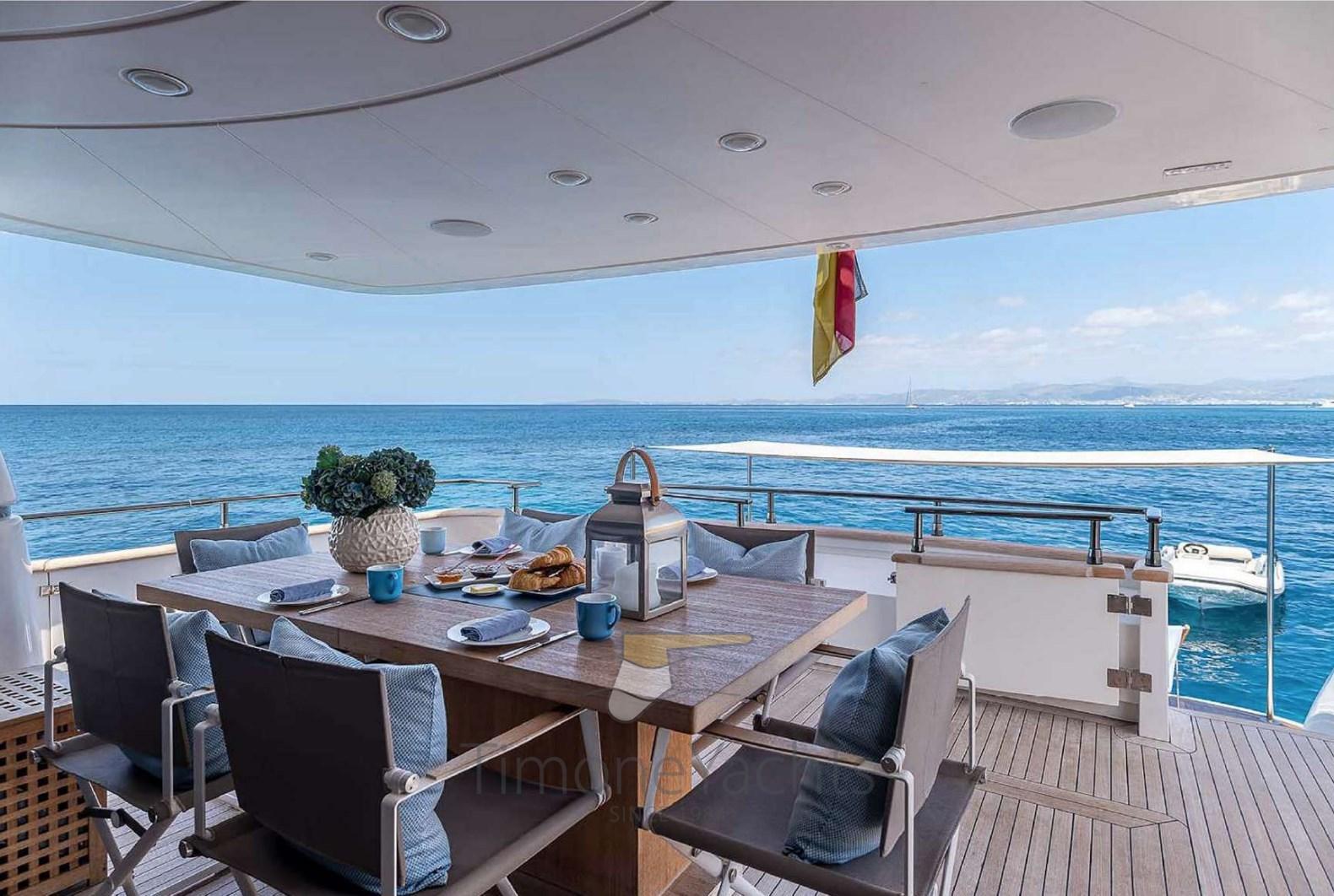 Bilge Alarm, Water pressure pump, Batteries (1000Ah), Teak Side Decks, Battery charger (12v 24v), Deck Shower, Twin Steering, Directional Spotlight, Hydraulic Flaps, Fire Extinguishing System, Flaps Indicators, Anchor Chain Washdown, Courtesy Lights, Underwater lights, Gangway (Besenzoni stainless steel hydraulic passerelle), Platform, Automatic Bilge Pump, 2 Side door, Teak Cockpit, Shorepower connector, Voltage Rectifier, Rollbar, Electric Windlass, swimming ladder, Stabilizers, cockpit table, Tender (Williams 345 Tender from 2018), Horn, Stern Winches, Bow Winches.