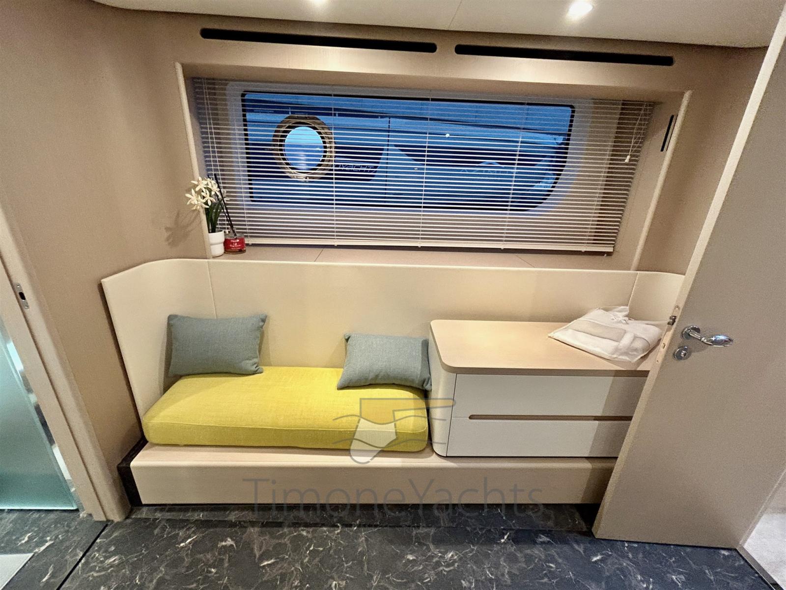 2022 Azimut 68 fly, privately owned and Vat paid. No hours, barely used. Nice open galley version with open lounge astern and dining fixed table up front. Amazing lightful colors and material. Joystick, Seakeeper, internet router, wooden salon floor. Ready to go.