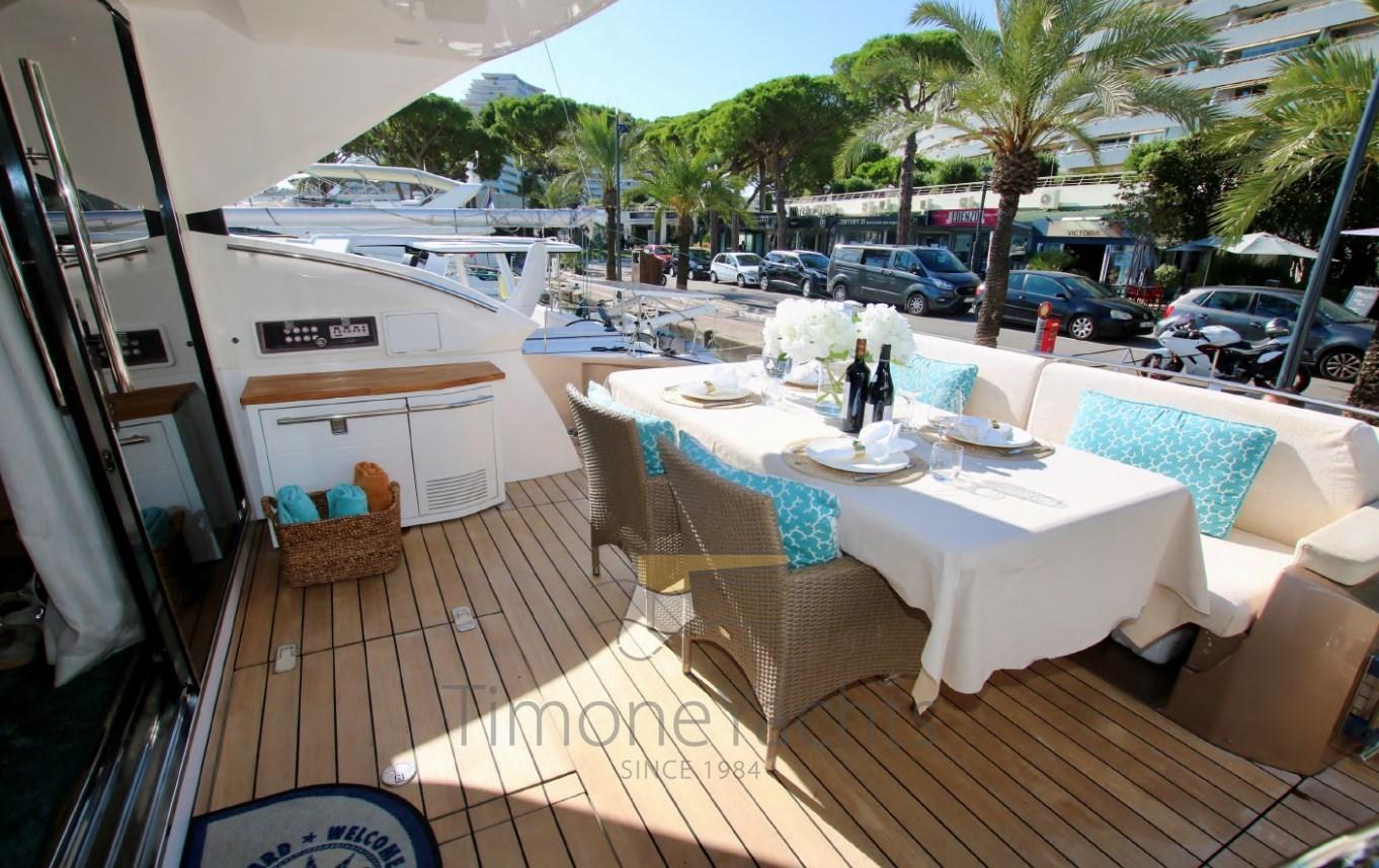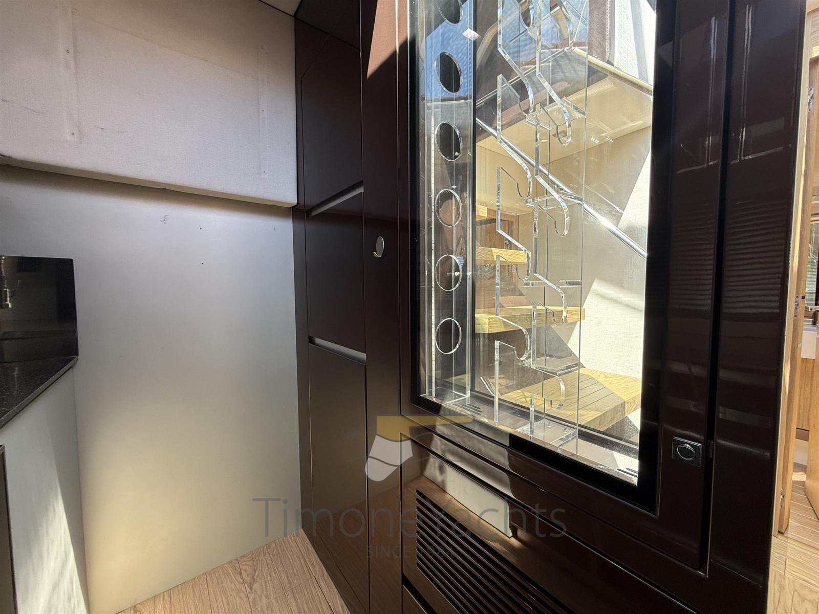 Fume/Gas Detector, Engine Alarm, Bilge Alarm, Water pressure pump, Teak Side Decks, Special Colour, Deck Shower, Electric Flaps, Hard top, Anchor Chain Washdown, Washbasin in the cockpit, Underwater lights, Gangway, Platform, Teak deck, Entry door, Teak Cockpit, Shorepower connector, Water harbor connector system, swimming ladder, Stabilizers (Seakeeper 9), cockpit table, Tender, guard rails with gates, Horn, Bow Winches.