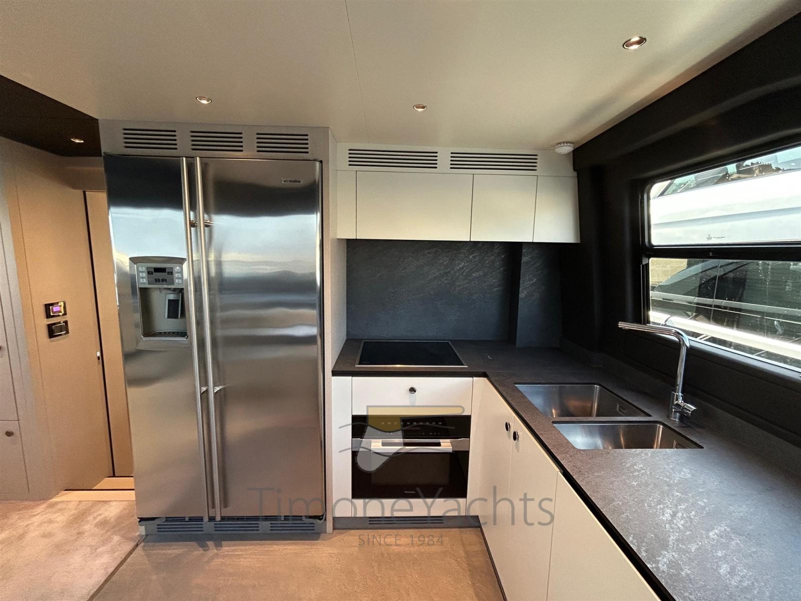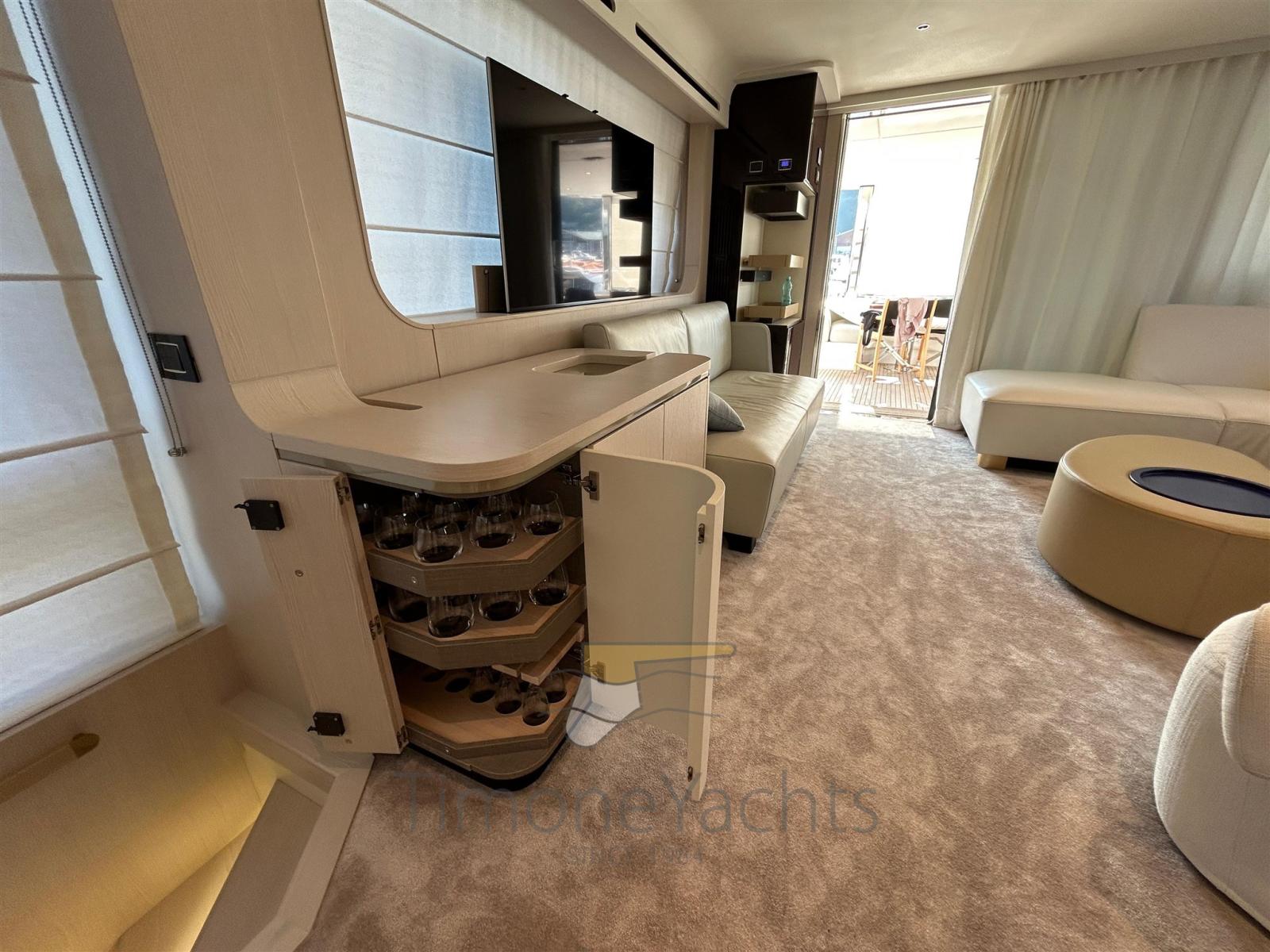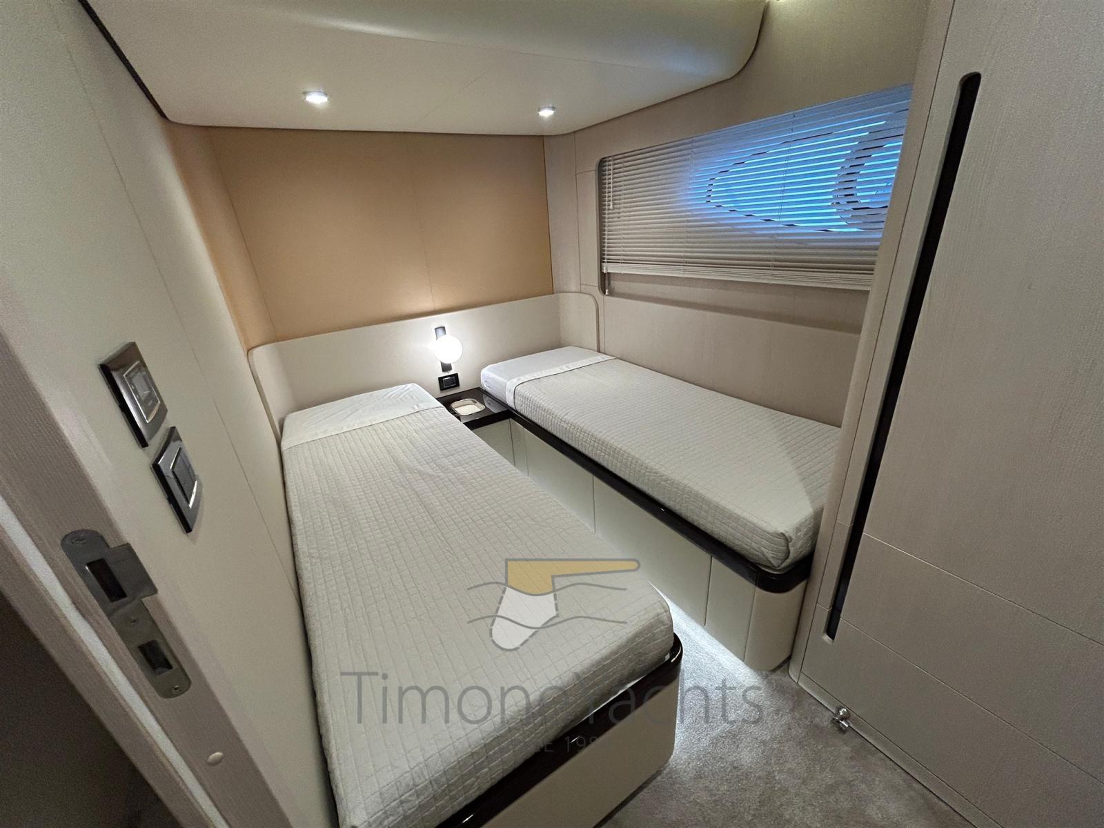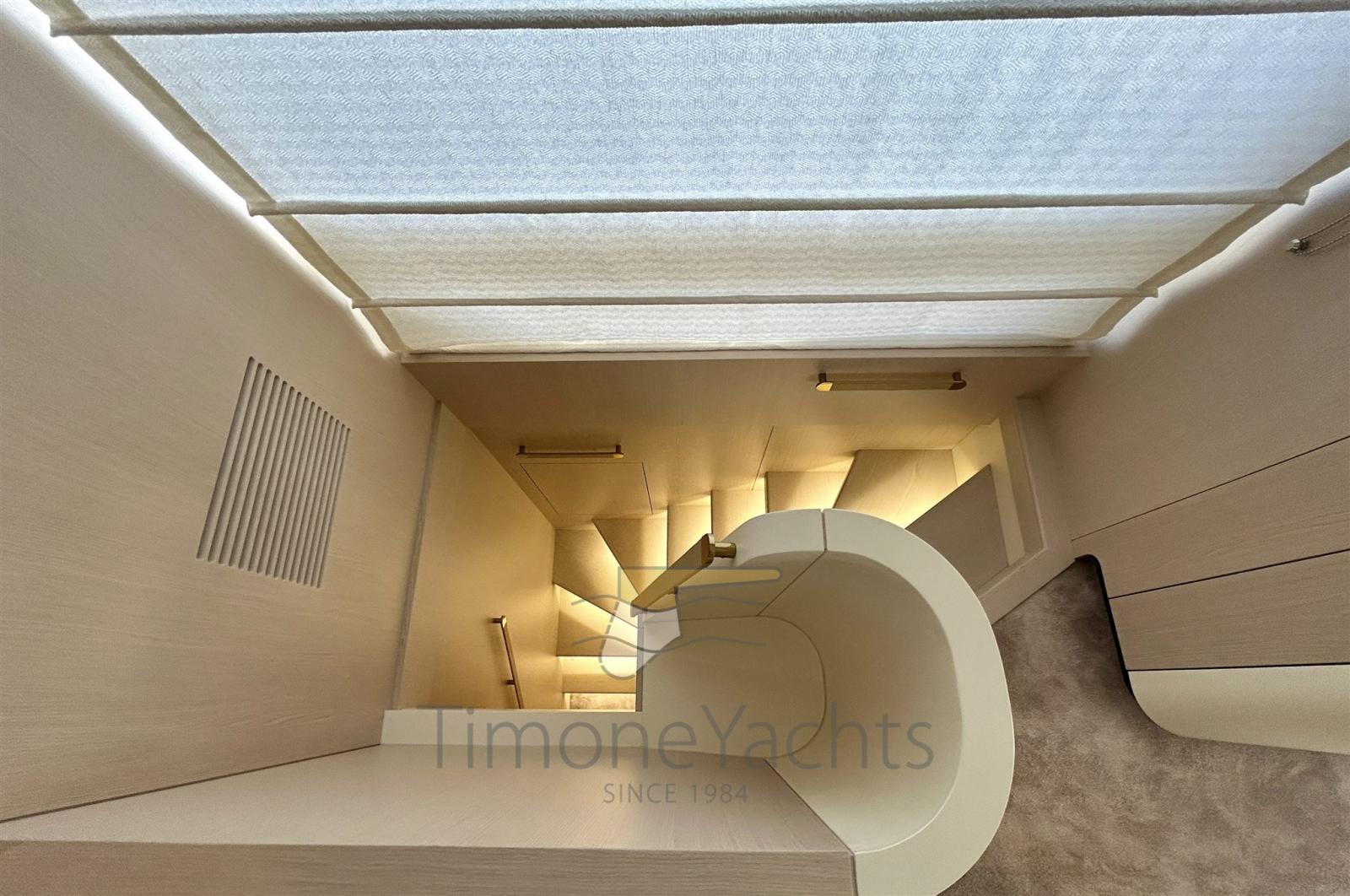 Fume/Gas Detector, Engine Alarm, Bilge Alarm, Alternator, Water pressure pump, Teak Side Decks, Deck Shower, Twin Steering, Electric Flaps, Hard top, Anchor Chain Washdown, Washbasin in the cockpit, Underwater lights, Gangway, Platform, Automatic Bilge Pump, Teak deck, Entry door, Side door, Teak Cockpit, Shorepower connector, Water harbor connector system, swimming ladder, Stabilizers (Seakeeper NG 26), cockpit table, Tender, Horn.