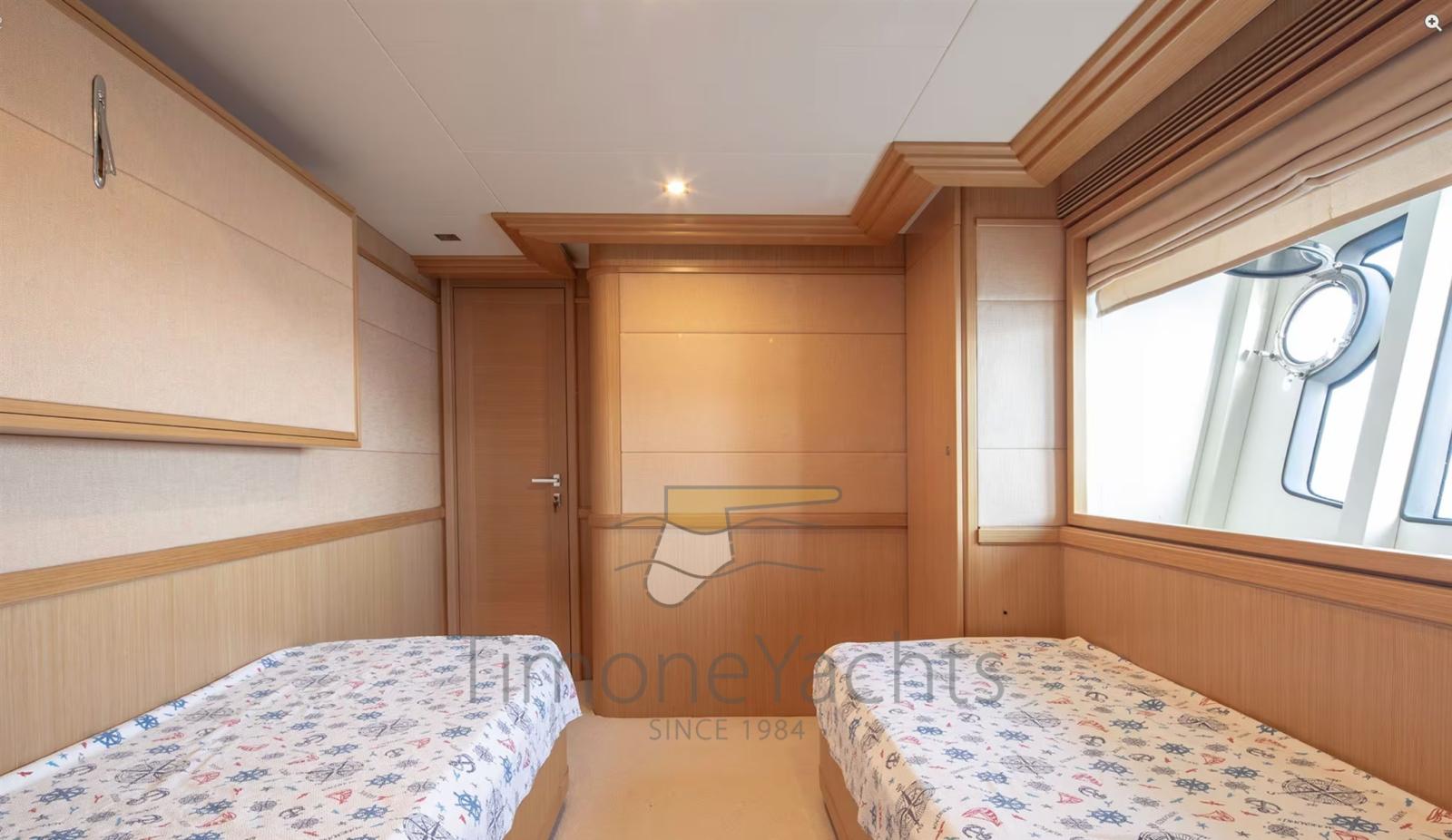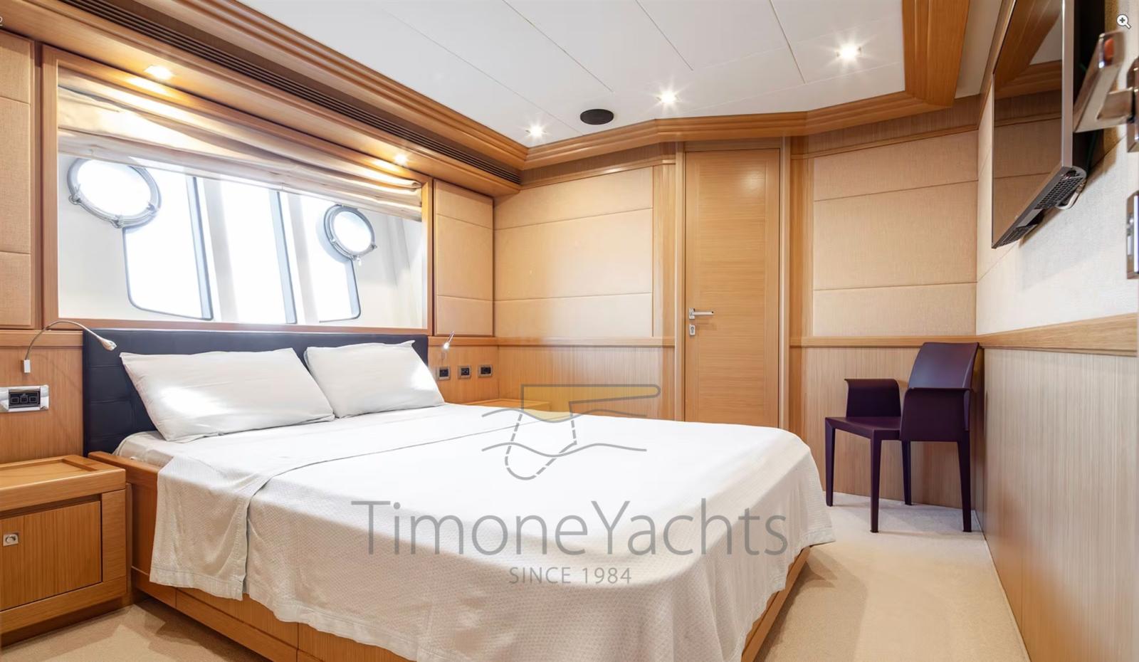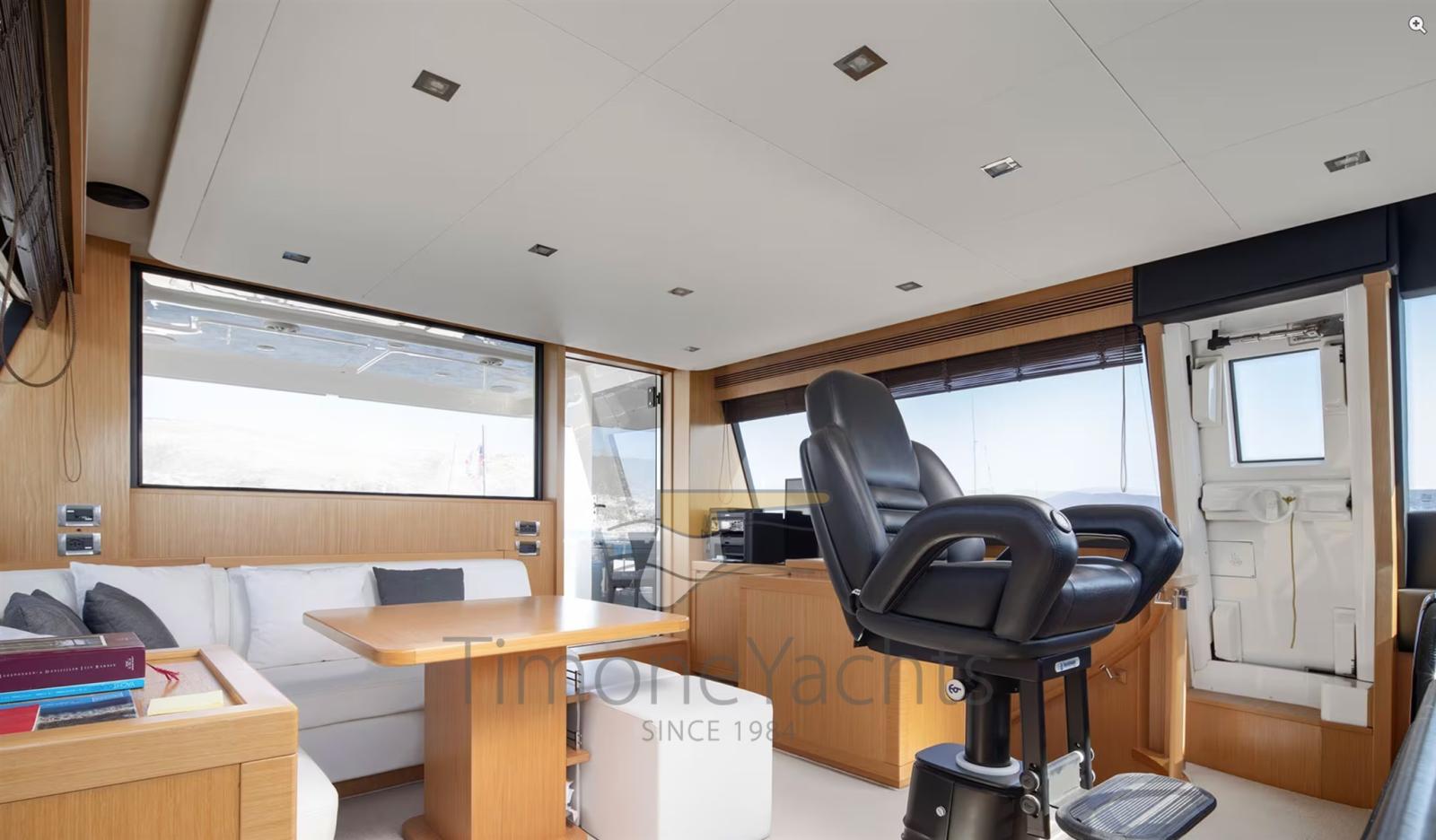 Alternator, Water pressure pump, Teak Side Decks, Deck Shower, Twin Steering, Directional Spotlight, Tender Garage, Davits for tender on fly, Hard top, Fire Extinguishing System, Anchor Chain Washdown, Washbasin in the cockpit, Courtesy Lights, Gangway, Teak deck, Entry door, 4 Side door, Teak Cockpit, Shorepower connector, Water harbor connector system, Saddles for tender, Stabilizers (Zero Speed Stabilizers), cockpit table, Tender (4.3m Capelli tender with 70hp Yamaha engine), Horn, 2 Stern Winches, Bow Winches.