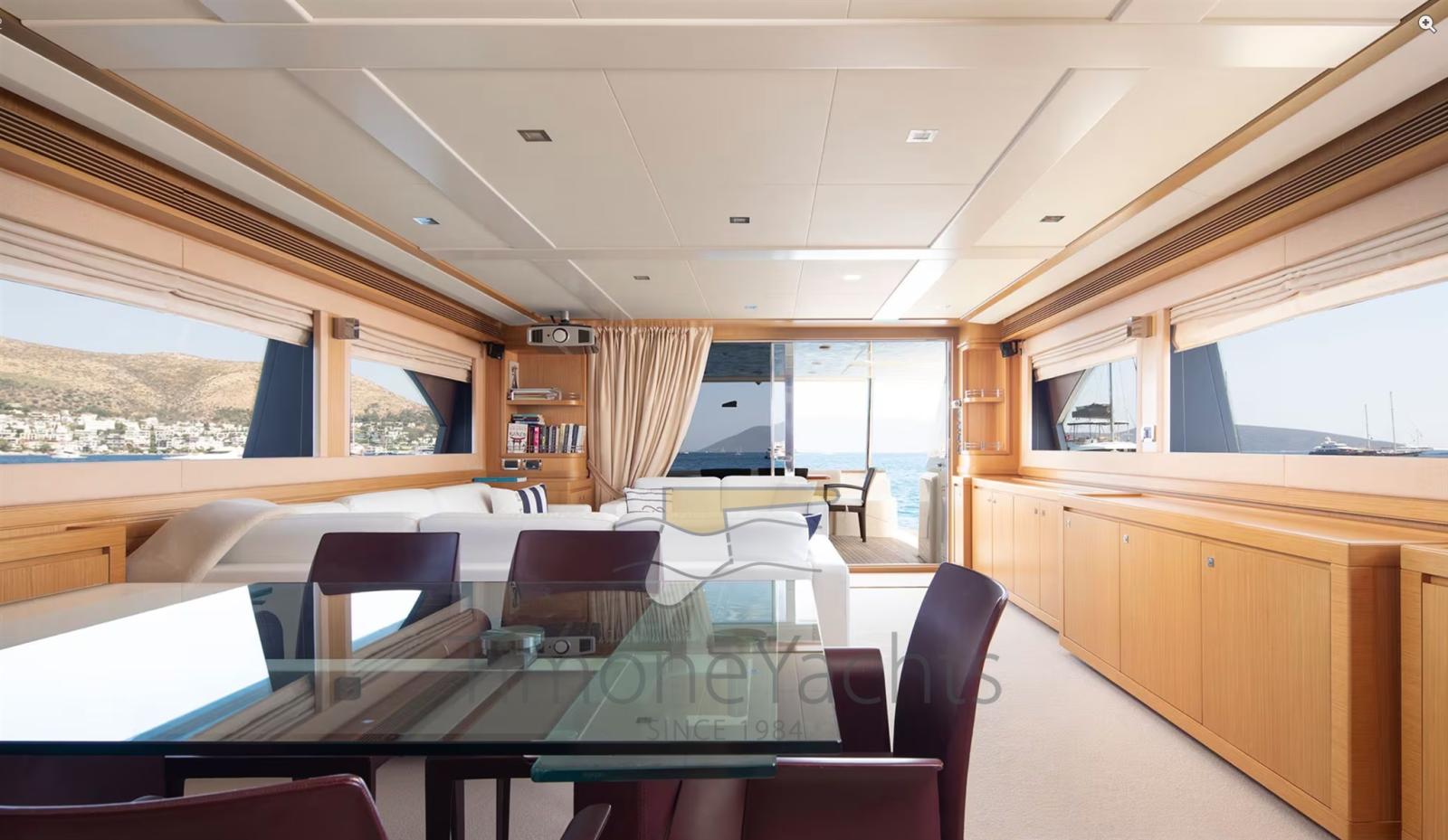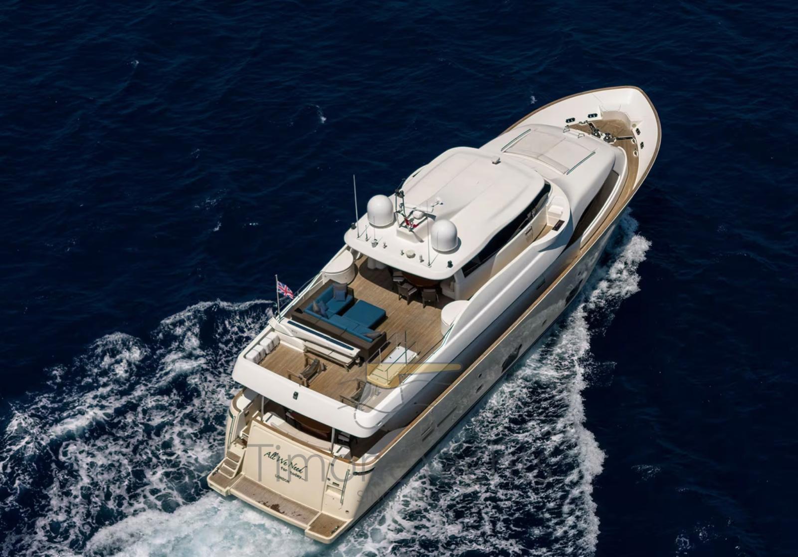 Delivered in 2009, this beautiful Custom Line Navetta 26 was only used sporadically and always for private use. Designed by Zuccon International Project, "All We Need For Today" offers bright, contemporary and refined interiors, characterized by exceptional volumes for a boat of this size.