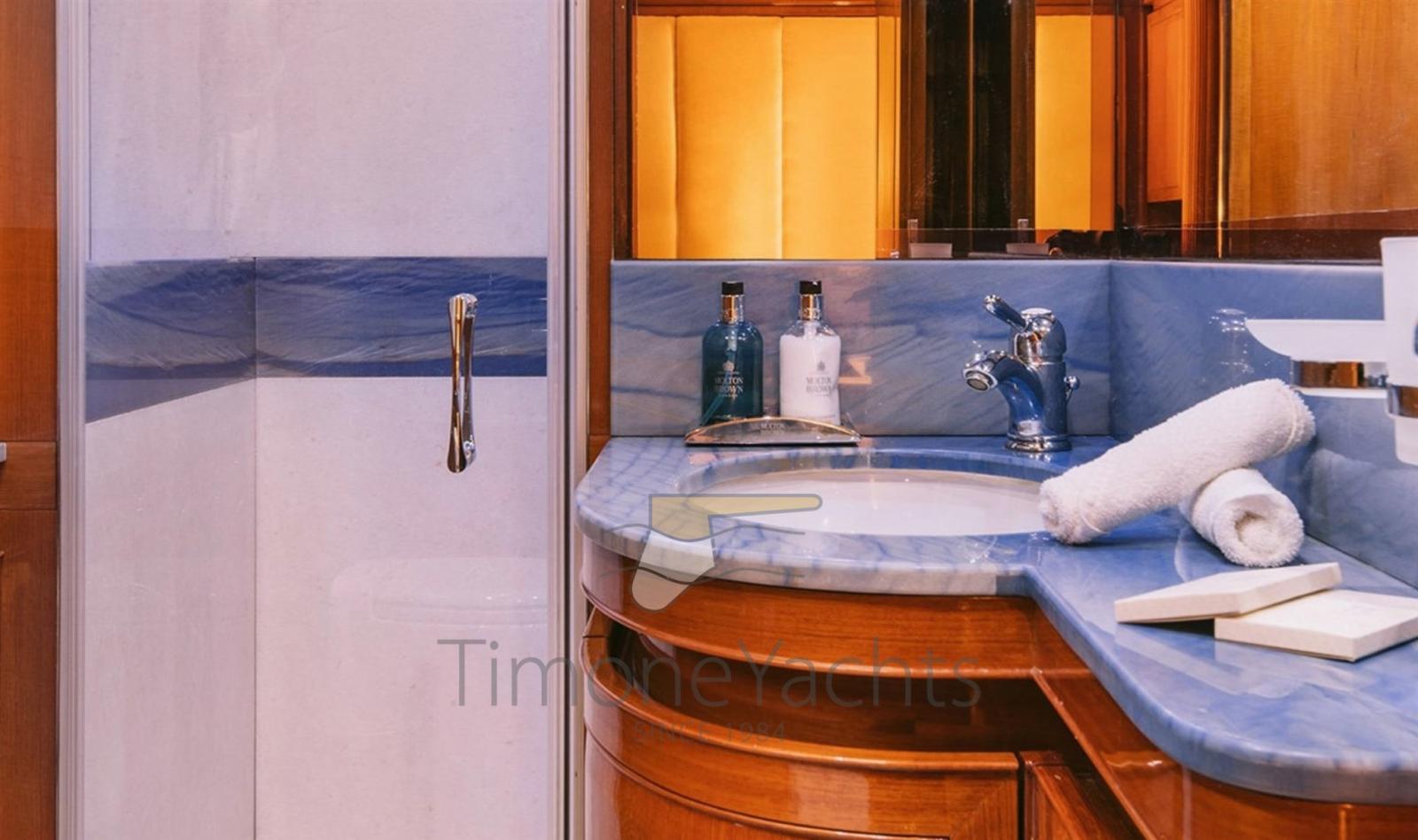 10 Batteries (18 x Varta), Teak Side Decks, Deck Shower, Directional Spotlight, Tender Crane, Davits for tender on fly, Fire Extinguishing System, Flaps Indicators, Anchor Chain Washdown, Courtesy Lights, Underwater lights, Gangway, Teak deck, 2 Side door, Teak Cockpit, swimming ladder, cockpit table, Tender (Grant S 4.30m Yamaha 60 hp), Horn, Stern Winches.
