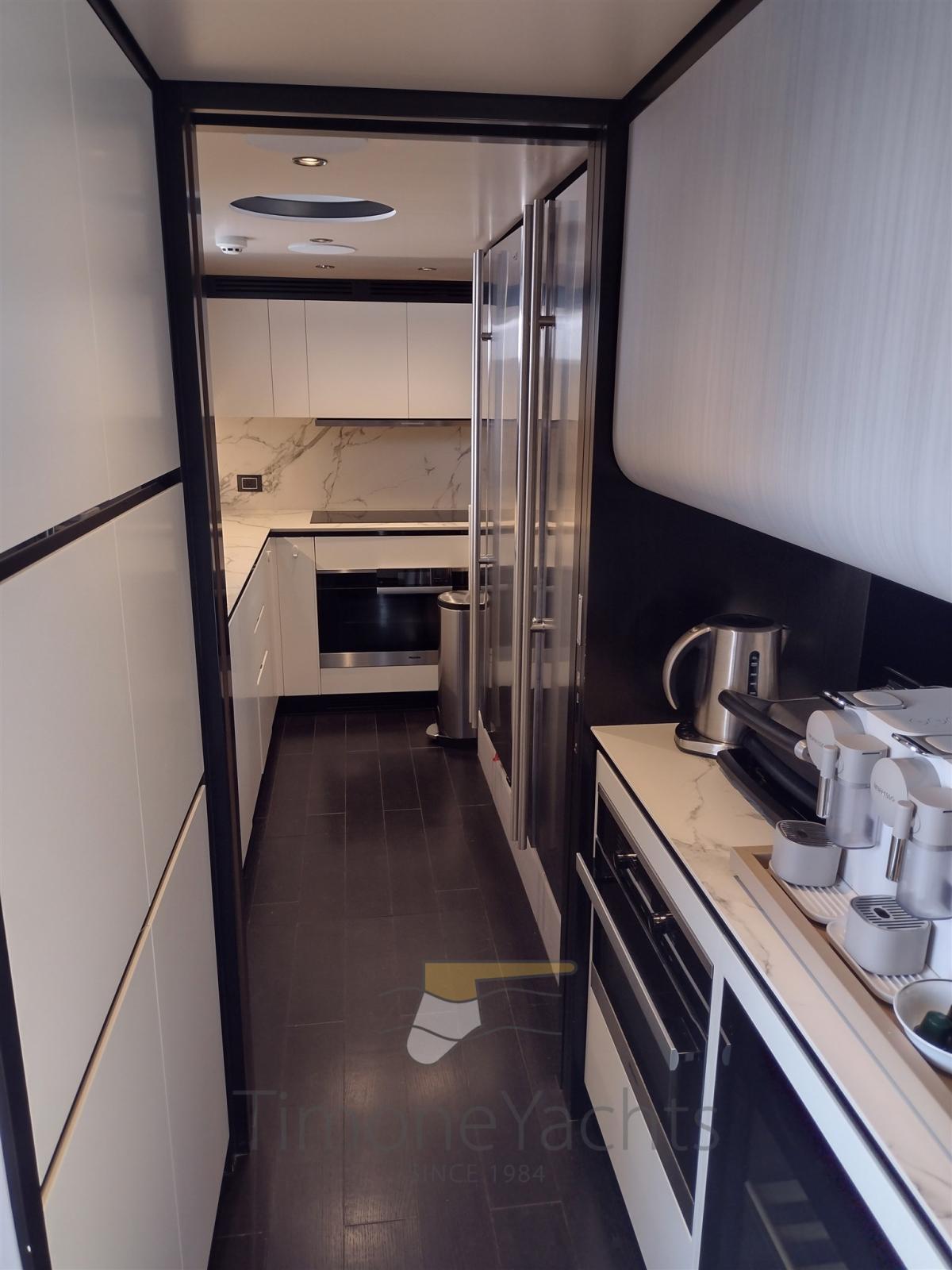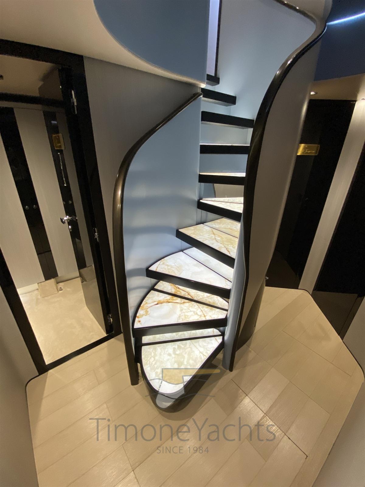 Auto-Trim (Humphree), Teak Side Decks, Deck Shower, Directional Spotlight, Electric Flaps, Tender Garage, Hard top, Fire Extinguishing System, Flaps Indicators, Anchor Chain Washdown, Underwater lights, Gangway, Side door, Teak Cockpit, Shorepower connector, Water harbor connector system, Stabilizers (CMC fins (underway + zero speed)), cockpit table, Tender (Williams 445), Horn, 2 Stern Winches, 2 Bow Winches.