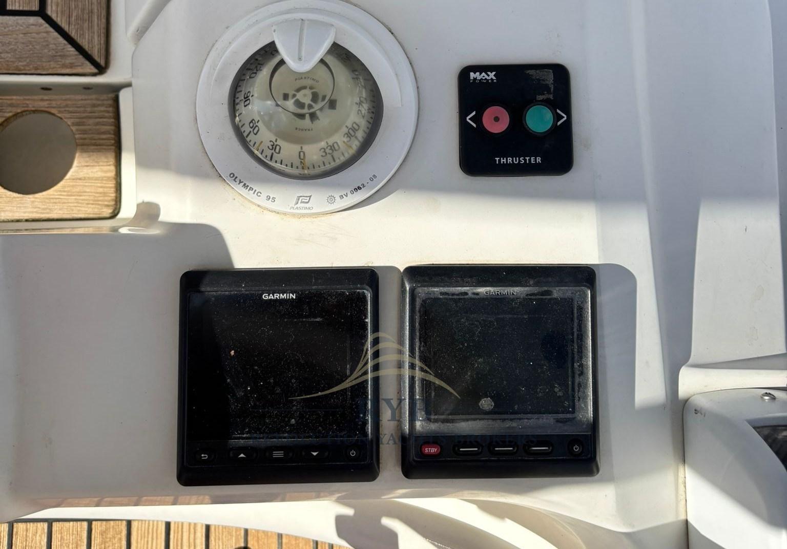 Anchor (50 metri catena zincata), Twin Steering (CARBONAUTICA), Secondary Propeller, Courtesy Lights (LED), Solar panels, Gangway, Platform (RETRAIBILE), Teak Cockpit, Shorepower connector, Electric Windlass (CON COMANDO REMOTO), Strand rigging, cockpit table (ABBATTIBILE), Living Room Foldable Table.