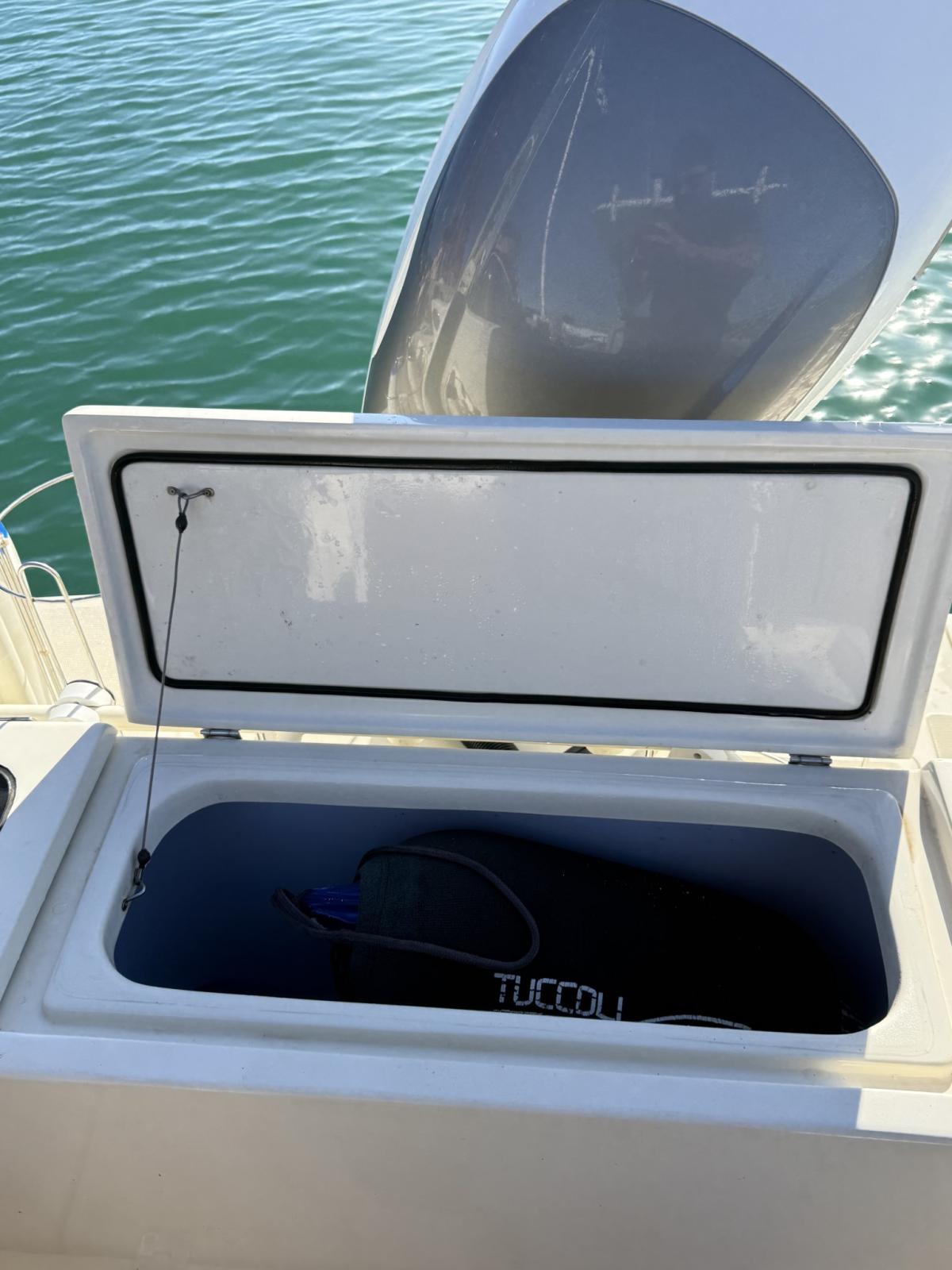 Alternator, Water pressure pump, Shore power cable, Deck Shower, Electric Flaps, Battery Monitor, Fenders, Automatic Bilge Pump, Seawater Pump, Shorepower connector, swimming ladder, cockpit table, Horn, T-Top.