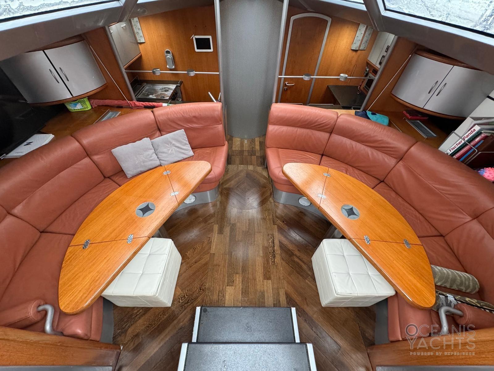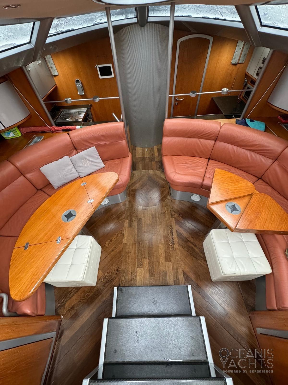 12 Batteries, 2 Twin Steering (RUOTE IN CARBONIO), Gangway, Automatic Bilge Pump, Manual Bilge Pump, Entry door, Teak Cockpit, Shorepower connector, Electric Windlass, Rod rigging, cockpit table, 2 Winch Electric (HARKEN).