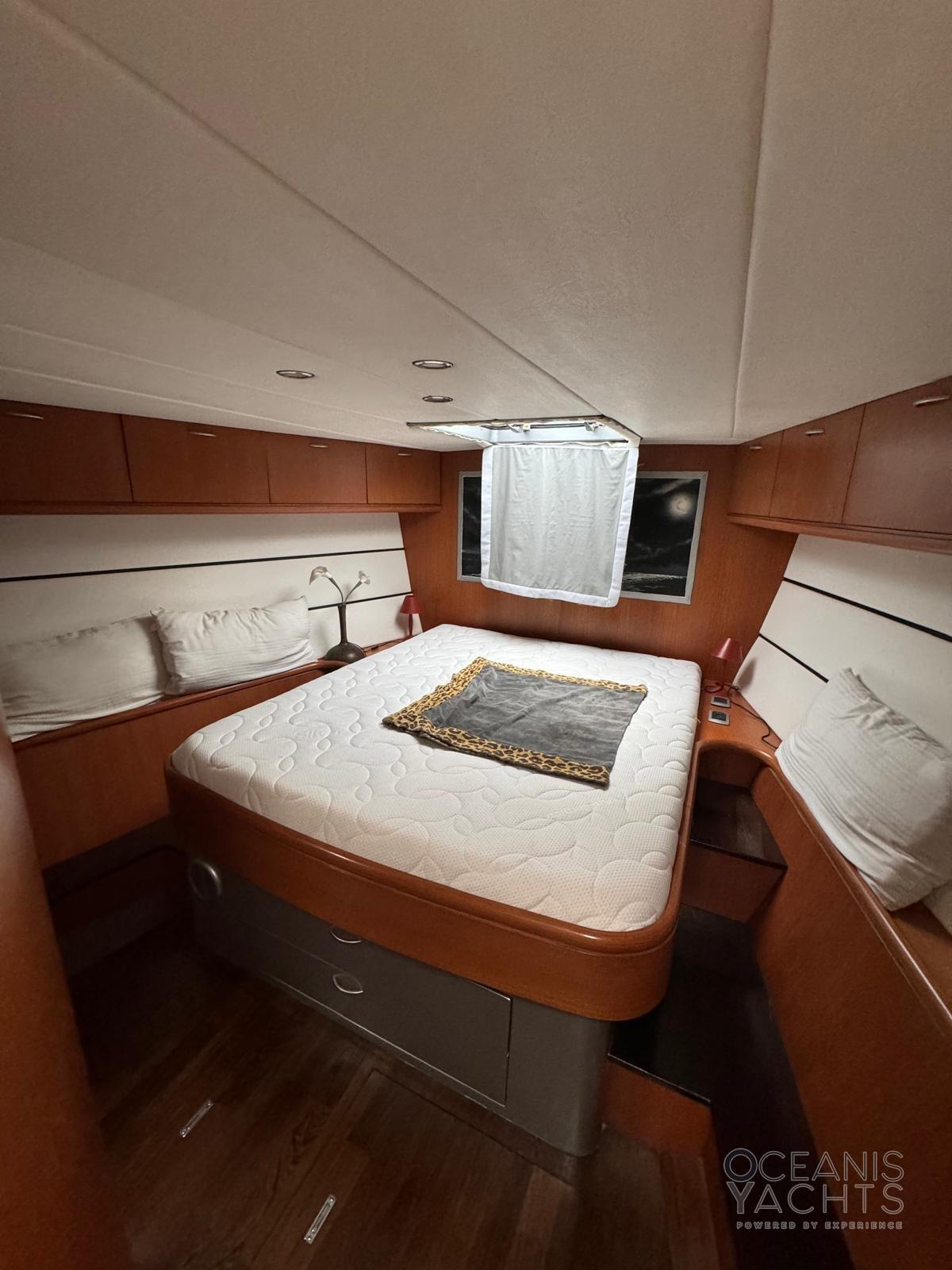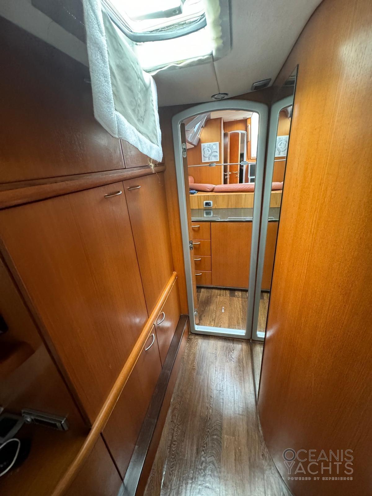 INTERIORS WITH 3 TWIN CABINS (TWO DOUBLES AND ONE TWIN) AND TWO BATHROOMS (ONE WITH SEPARATE SHOWER). SEPARATE KITCHEN. SAIL LOCKER CONVERTIBLE INTO A SAILOR'S CABIN.