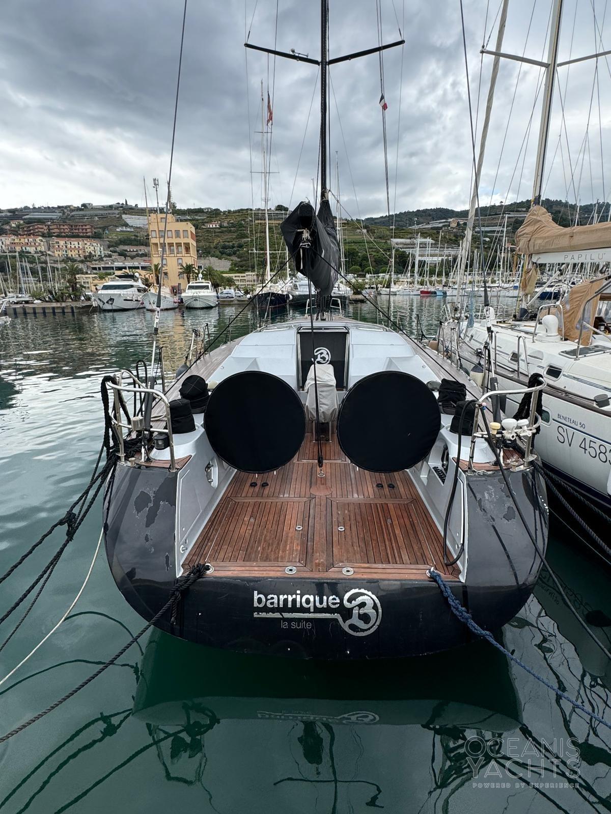 TEAK DECK REDONE IN 2016. MAST - BOOM AND RETRACTABLE BOWSPRIT IN CARBON. BATTENED MAINSAIL WITH LAZY BAG 2012. GENOA FURLING 2012. CODE 0. GENNAKER WITH SOCK..