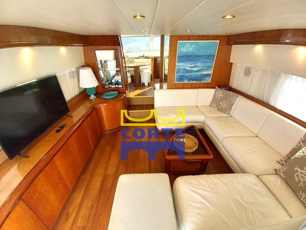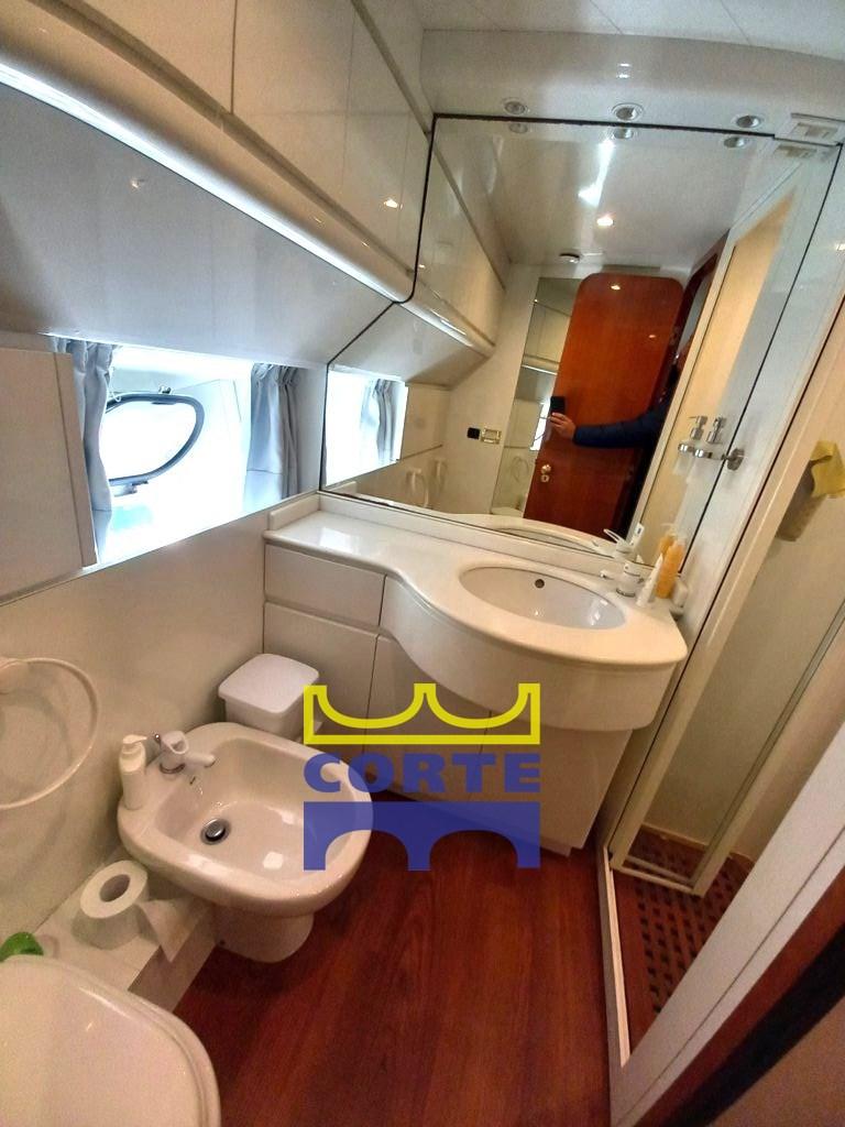 Fume/Gas Detector, Engine Alarm, Bilge Alarm, 2 Water pressure pump (1 nuova), Batteries (2022-2023 servizi e motori), Teak Side Decks, 2 Battery charger (uno nuovo), Deck Shower, Twin Steering, Directional Spotlight, Hydraulic Flaps, Fire Extinguishing System (revisionato), Anchor Chain Washdown, Courtesy Lights (gradini discesa cabine), 2 Underwater lights (nuove), Gangway (elettro idraulica), Platform (di poppa in teak), Automatic Bilge Pump, Entry door, Side door, Teak Cockpit, Shorepower connector, Water harbor connector system, Rollbar, Electric Windlass (revisionato 2023), swimming ladder (comoda), cockpit table, Horn, Stern Winches, Bow Winches (revisionato 2023).
